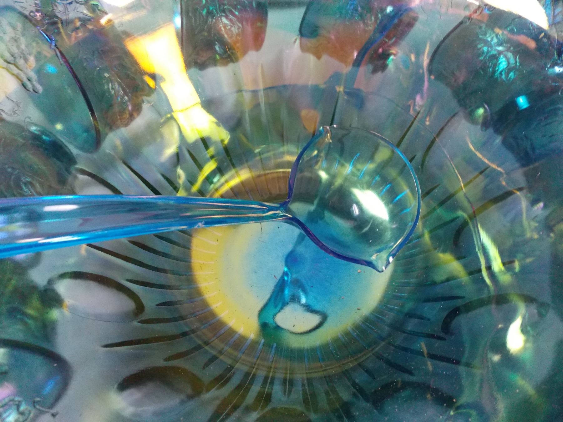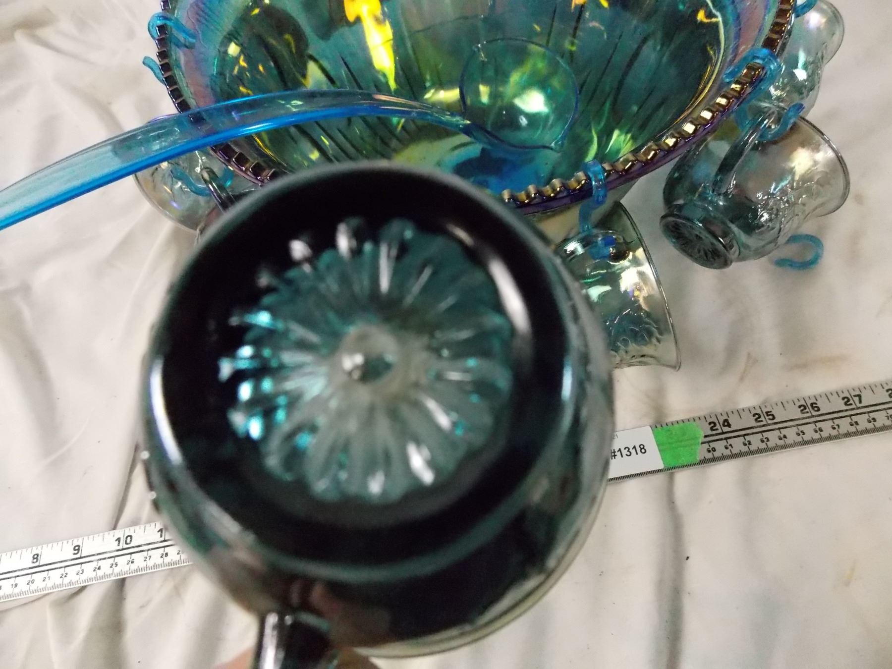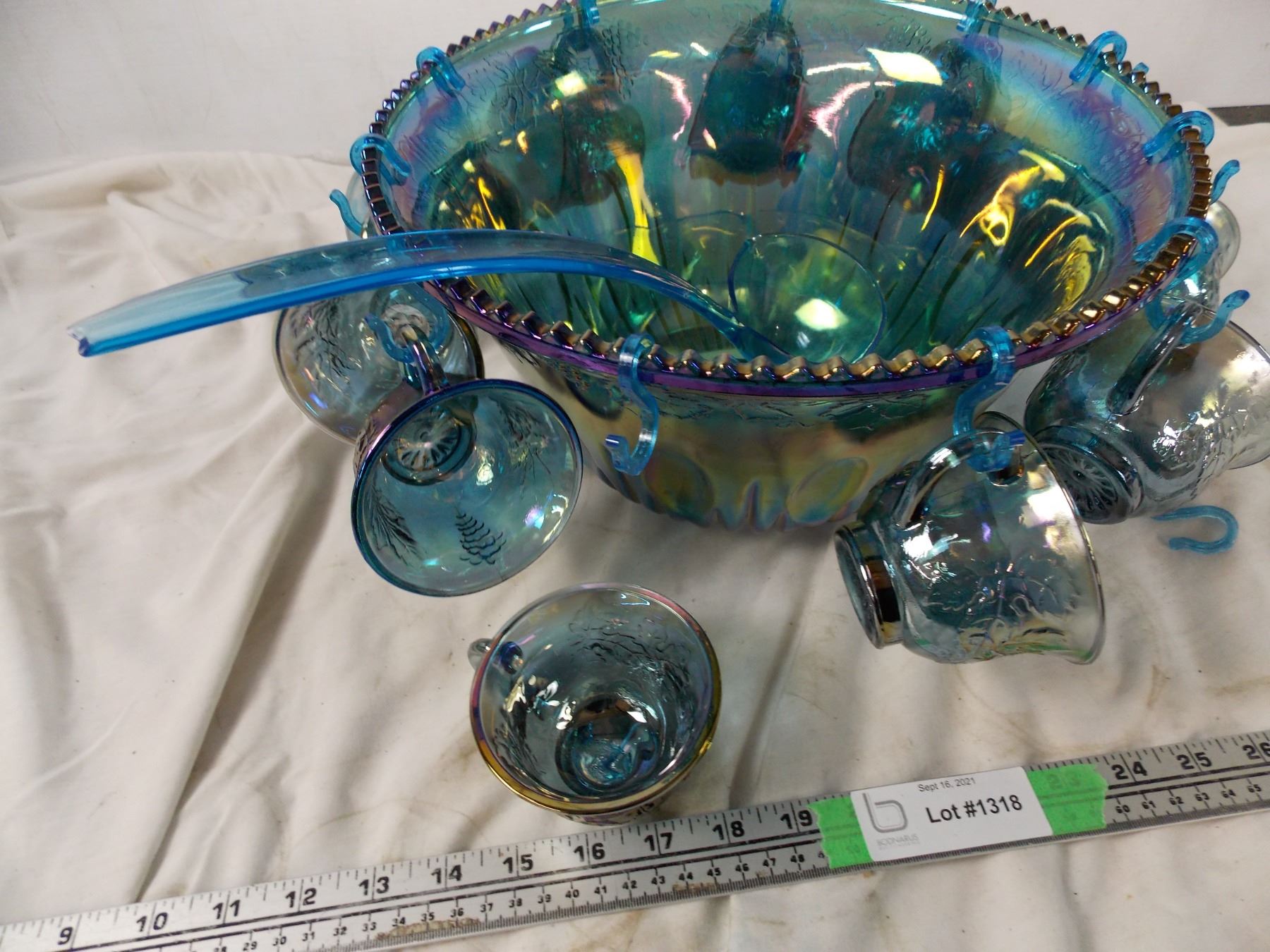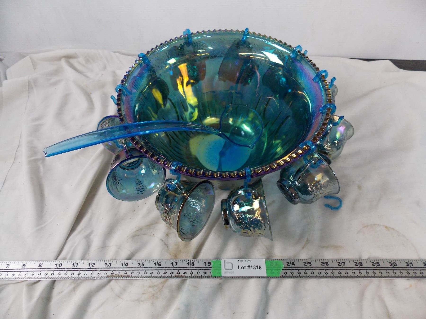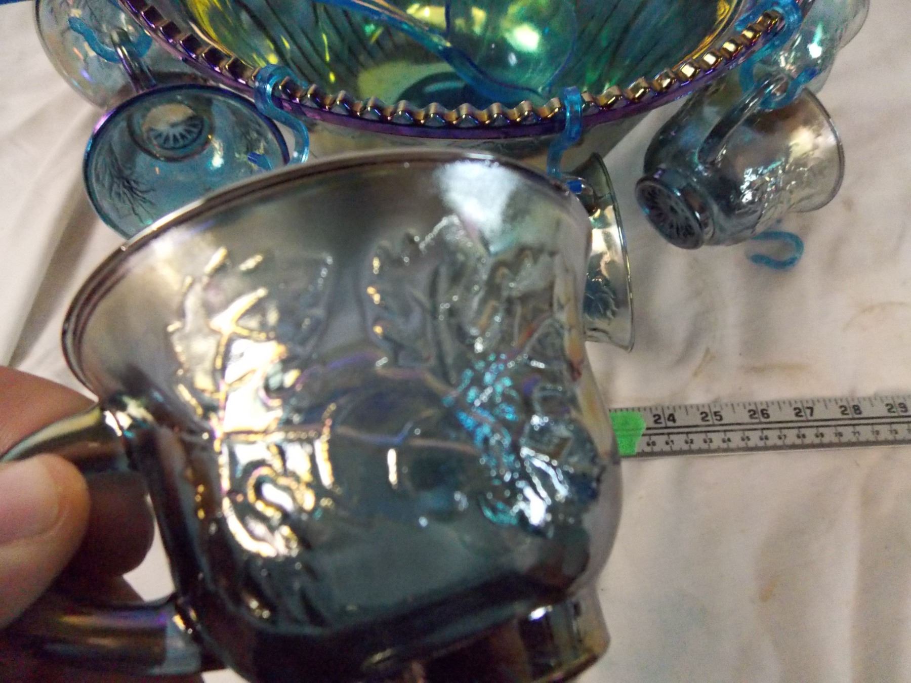 carnival glass punch bowl - Complete (has all 12 cup with hooks, one cup not pictured)