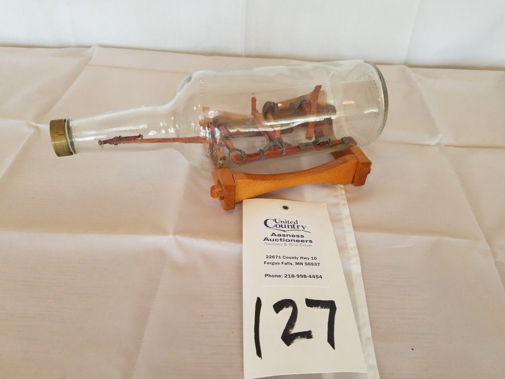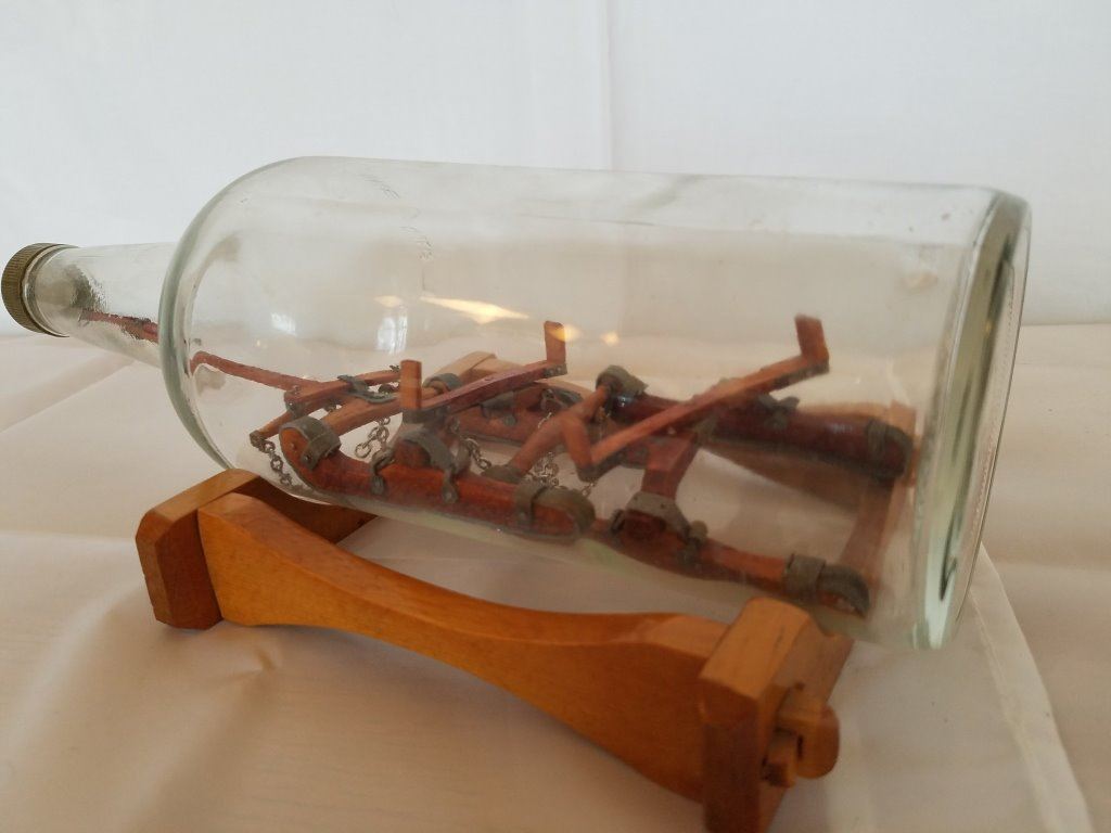 carved bobsled in a bottle