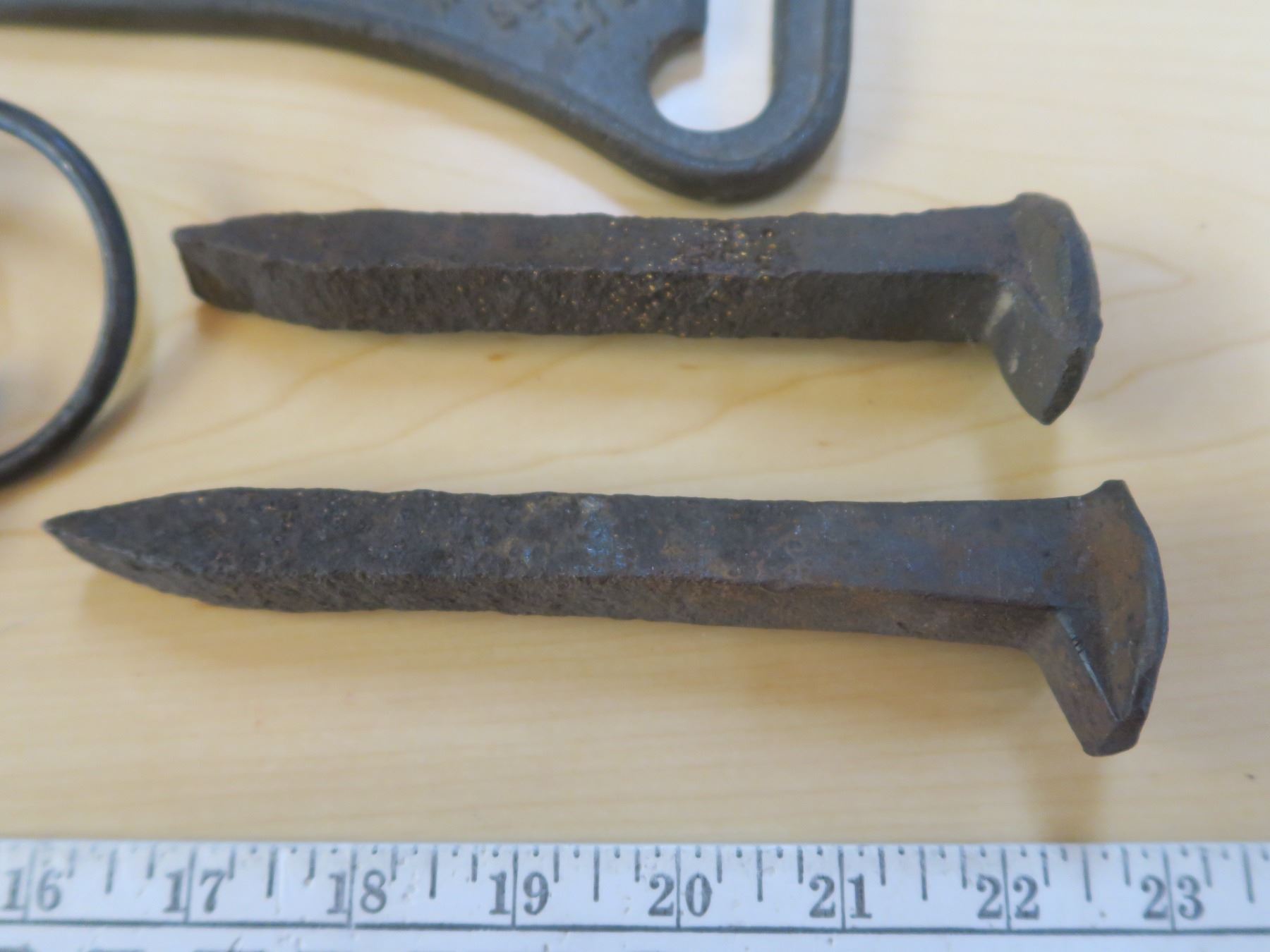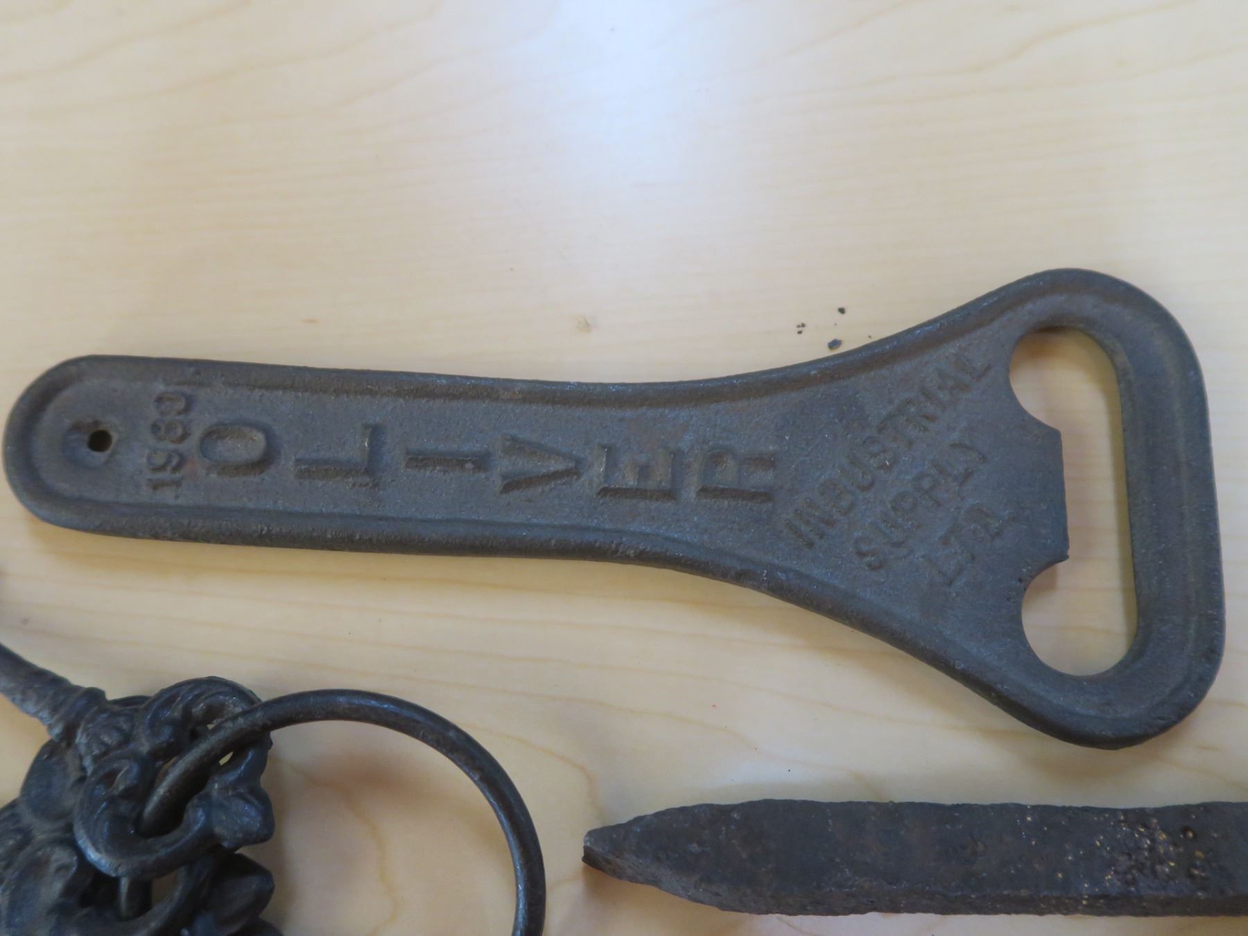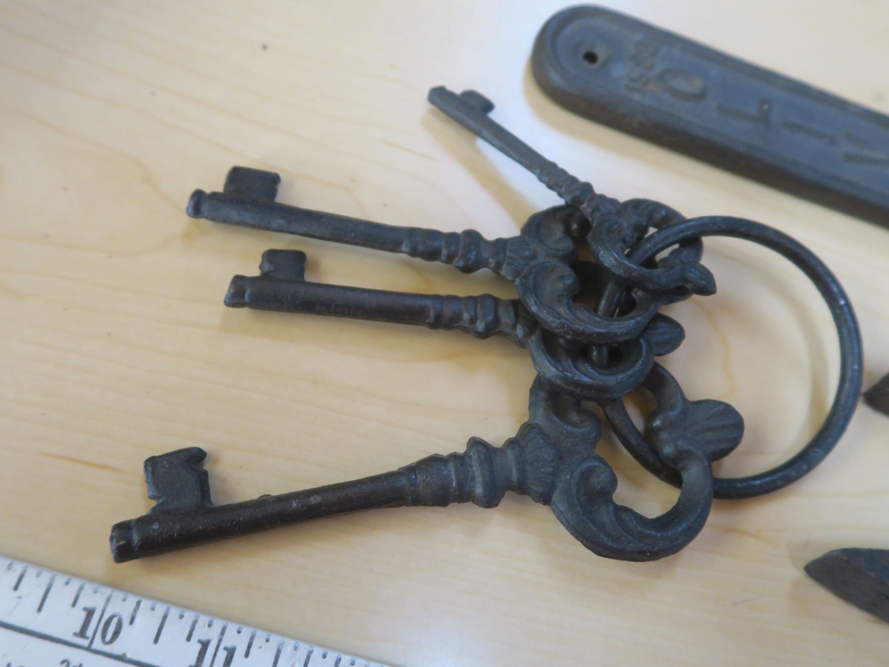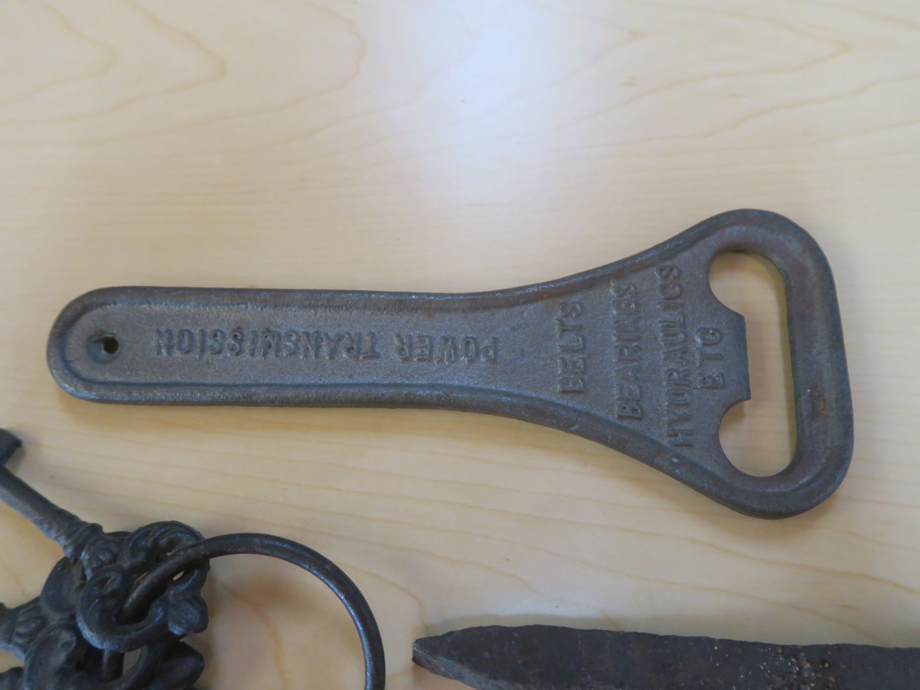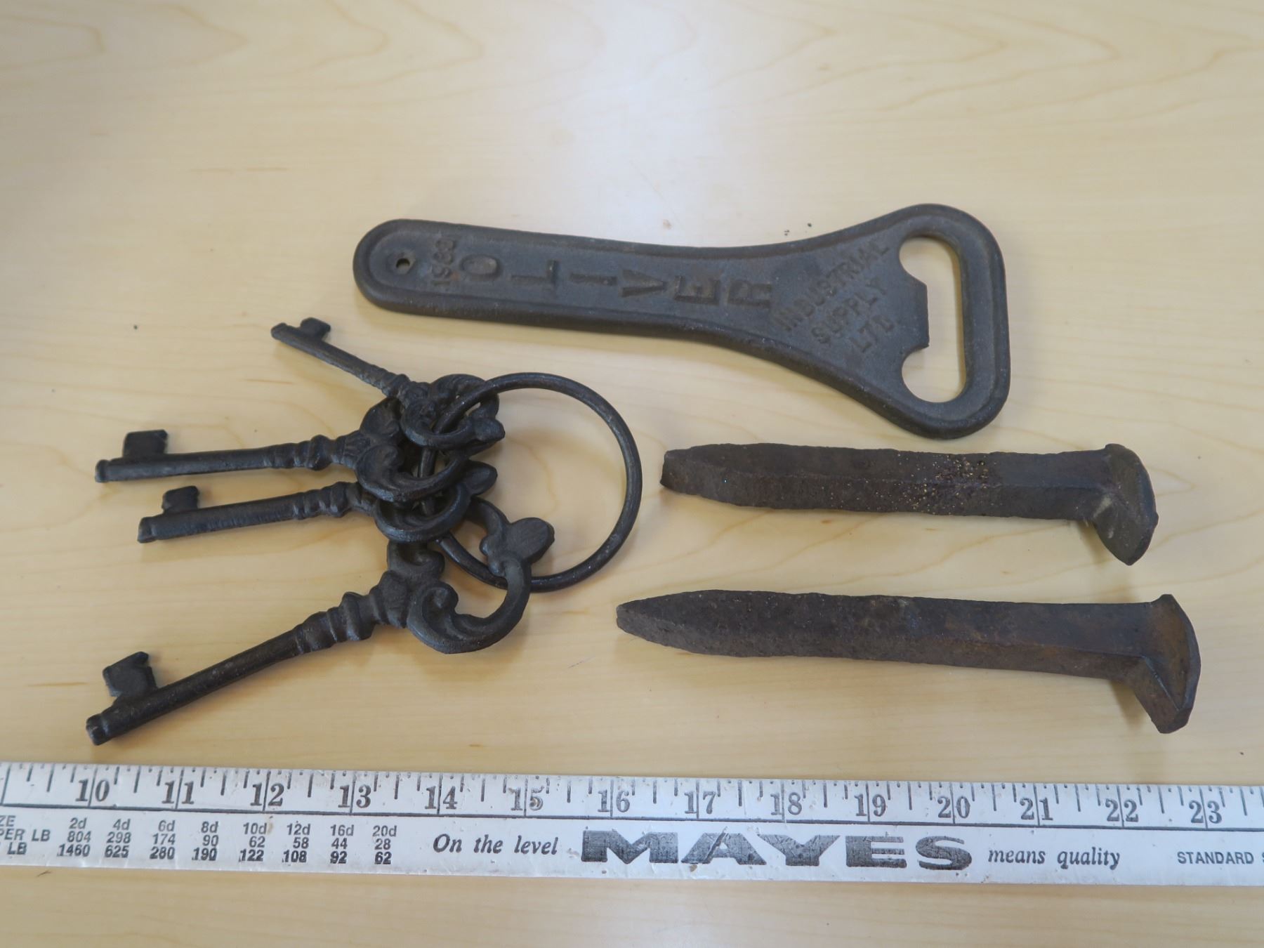 cast iron skeleton keys, railroad spikes and Oliver bottle opener
