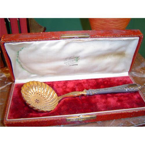 siver and gold caviar spoon in its original box , 19 century , france .