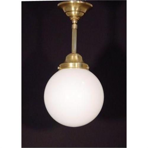 BRASS PENDANT FIXTURE WITH MILK GLASS GLOBE .</em></td>