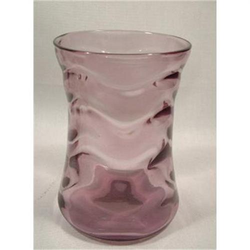 SIGNED Webb Celery vase that was most likely made between the 1920's and 1940's. It is signed Webb, England. The color seems lilac, and because of the peculiar geometric design, it changes in appearance. It has undulating or wavy lines, and because of this, the lilac is darker and lighter, depending upon the light, and depending where you are standing viewing this piece. It has the word "CELERY" ETCHED in on the top. Age wear surrounding the large polish pontil.