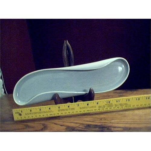 Steubenville,American Modern,Russel Wright,celery dish,or relish dish.I am not sure of the color name.but it is a speckled very light grey.probably late 1950's or 1960's.No chips,no cracks and no crazing.