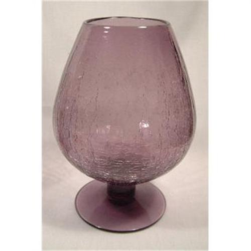 Exceptionally nice Crackle Glass stem footed bowl in amethyst. Great crackling. Very fine. This bowl was made by the Pilgrim Glass Company of West Virgina. They have been out of business for the past five years or so, and their pieces are becoming more collectible. The stem foot is not crackled. There is no damage. The bowl stands 7" tall