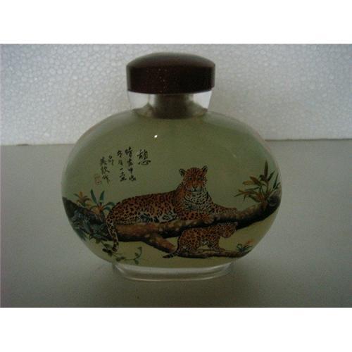an inside-painted with lion and leopard crystal snuff-bottle.20th century.