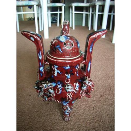 a rare ruby-ground two dragon incense burner and cover.19-20th century.