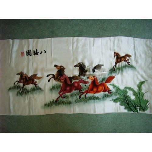 A Embroidered silk panel of eight horses.