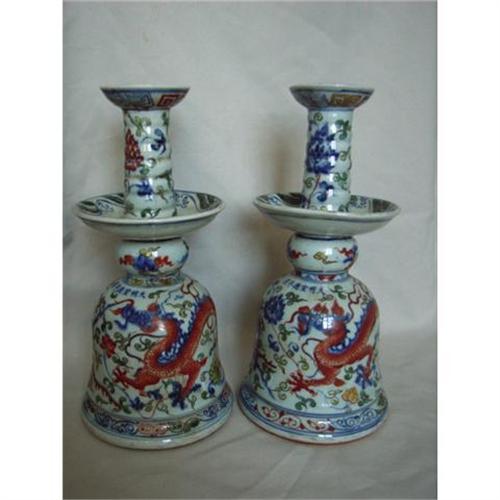 A very fine pare doucai'dragon and phoenix'candlestick. with a small broke,seal mark of XUANDE.