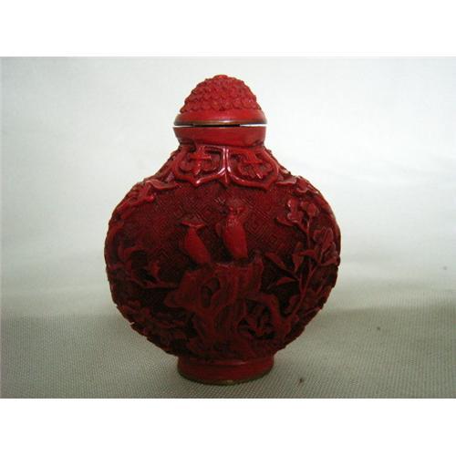A cinnabar Lacquer carved snuff bottle with flower and bird .seal mark of QIANLONG.