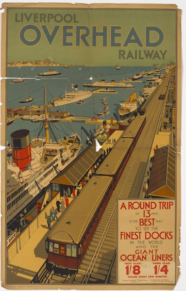 Colour lithograph by Liverpool Printing & Stationery Co. An attractive poster advertising the Liverpool Overhead or 'Docker's' Railway. Artwork by W.T.