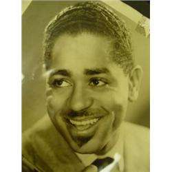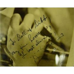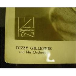 Dizzy Gillespie autographed photo. 8"x10". Black & white. Glossy. Circa 1940's. Addressed "To Doll & Dibb / My fine homeys / The best always / 'Dizzy' Gillespie. Dibb was Dibb Norman, jazz drummer who played with Gillespie in the Frankie Fairfax Band in Philadelphia in 1935. Condition: Scotch tape at top, crease at top right.