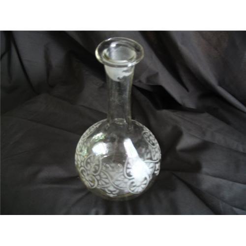 Lovely clear glass vase wtih white frosted pretty designs that add to the quality and appearance of this piece. It has been held for 2 generations and is now just avaliable for the first time.