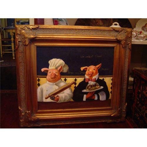 this great painting will give your kitchen or dining room a truely french flair . they are also beautifully framed in a rich roccoco golden frame . a must to have and a great gift as well .