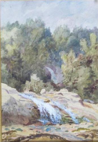 École canadienne 19e S./19th C. Canadian School. "Petit Ruisseau, Murray Bay". Aquarelle, initialée "B.W". Titrée et datée "Sept 90". Watercolour, initialled. Titled and dated "Sept 90". Provenance: Kent House, Quebec (later Manoir Montmorency)