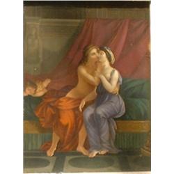École française 19e S./19th C. French School. "Loving Embrace". Huile sur métal. Oil on metal. 11 1/4" x 8 1/2" - 8.5cm x 21.5cm. $800/1200
