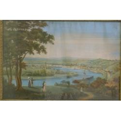 École française 19e S./19th C. French School. "Strolling along the Green overlooking the Town". Pastel. Pastel. 17" x 25" - 43.2cm x 63.5cm. $1000/1500