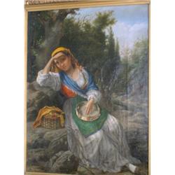 École italienne 19e S./19th C. Italian School. "The Tambourine Player". Huile sur toile. Oil on canvas. 22" x 16" - 56cm x 40.6cm. $3000/4000