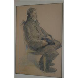 École russe/Russian School. "Waiting for the Doctor". Fusain, signé et daté "1908". Charcoal, signed and dated "1908". 18" x 12 1/4" - 45.6cm x 31cm. $400/600