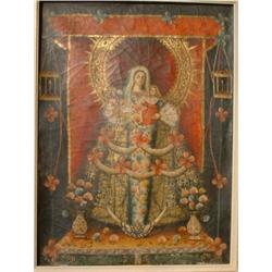 École sud-américaine 18e S./18th C. South American School. "Madonna and Child". 31 1/2" x 23 1/2" - 80cm x 59.5cm. $1200/1500