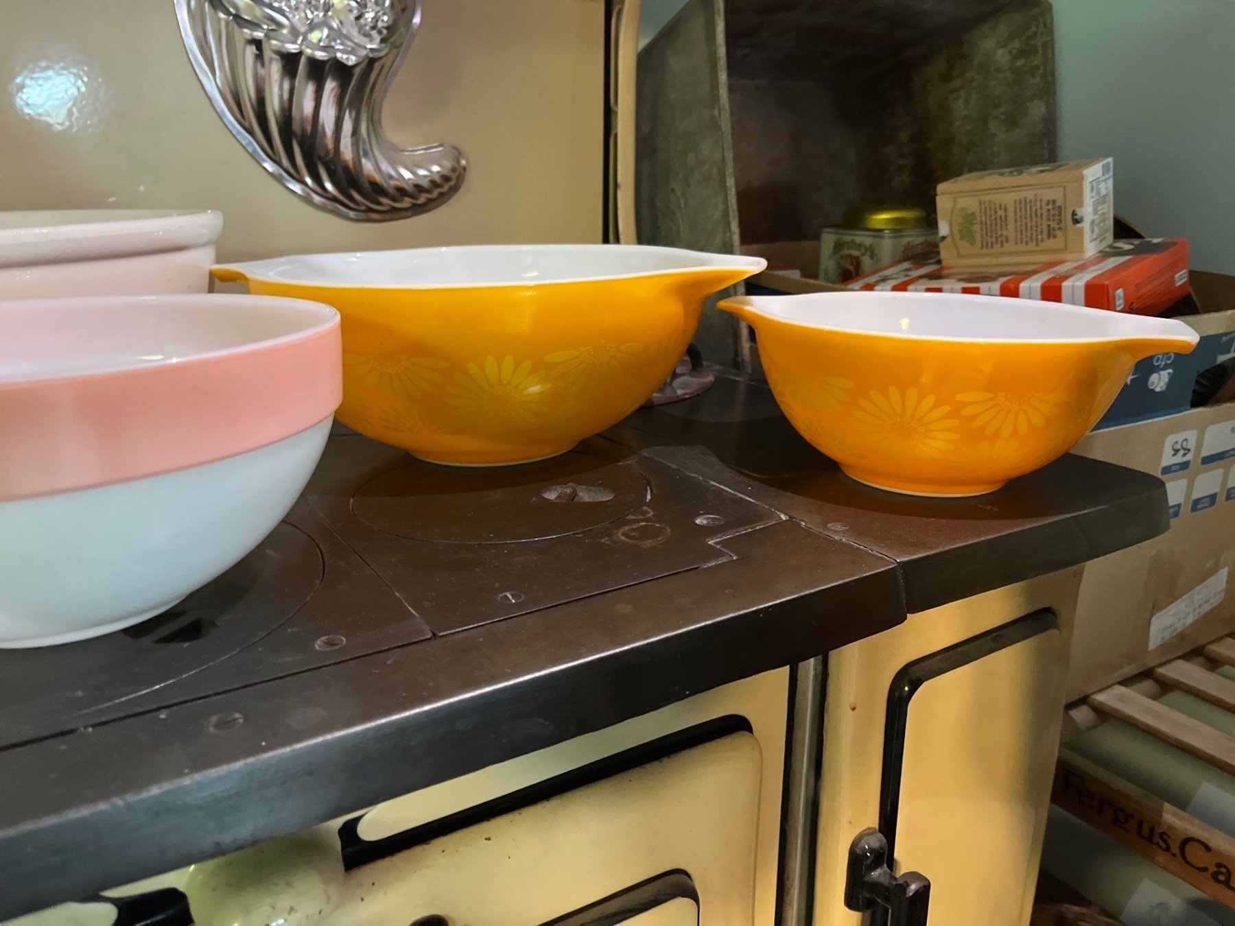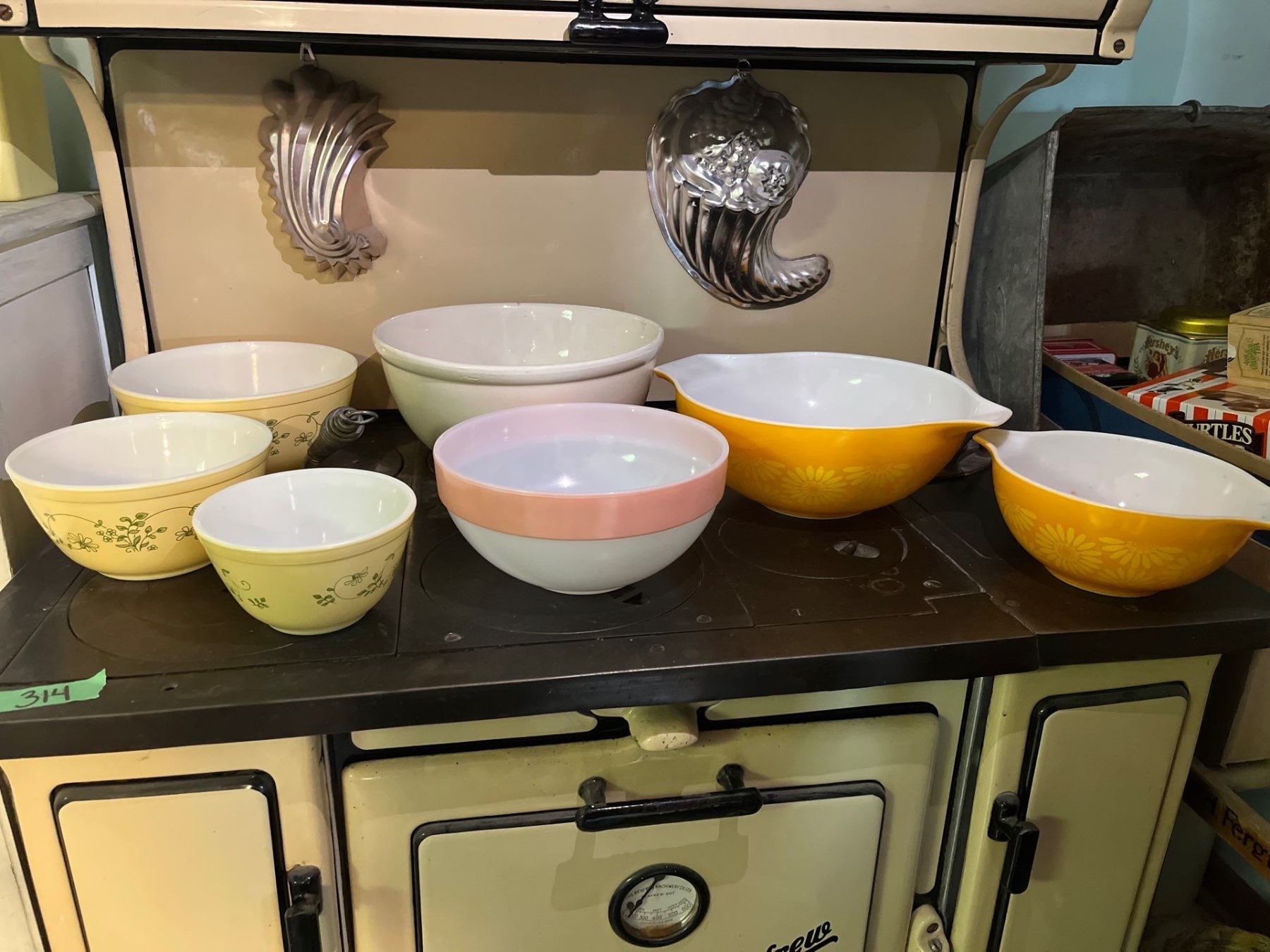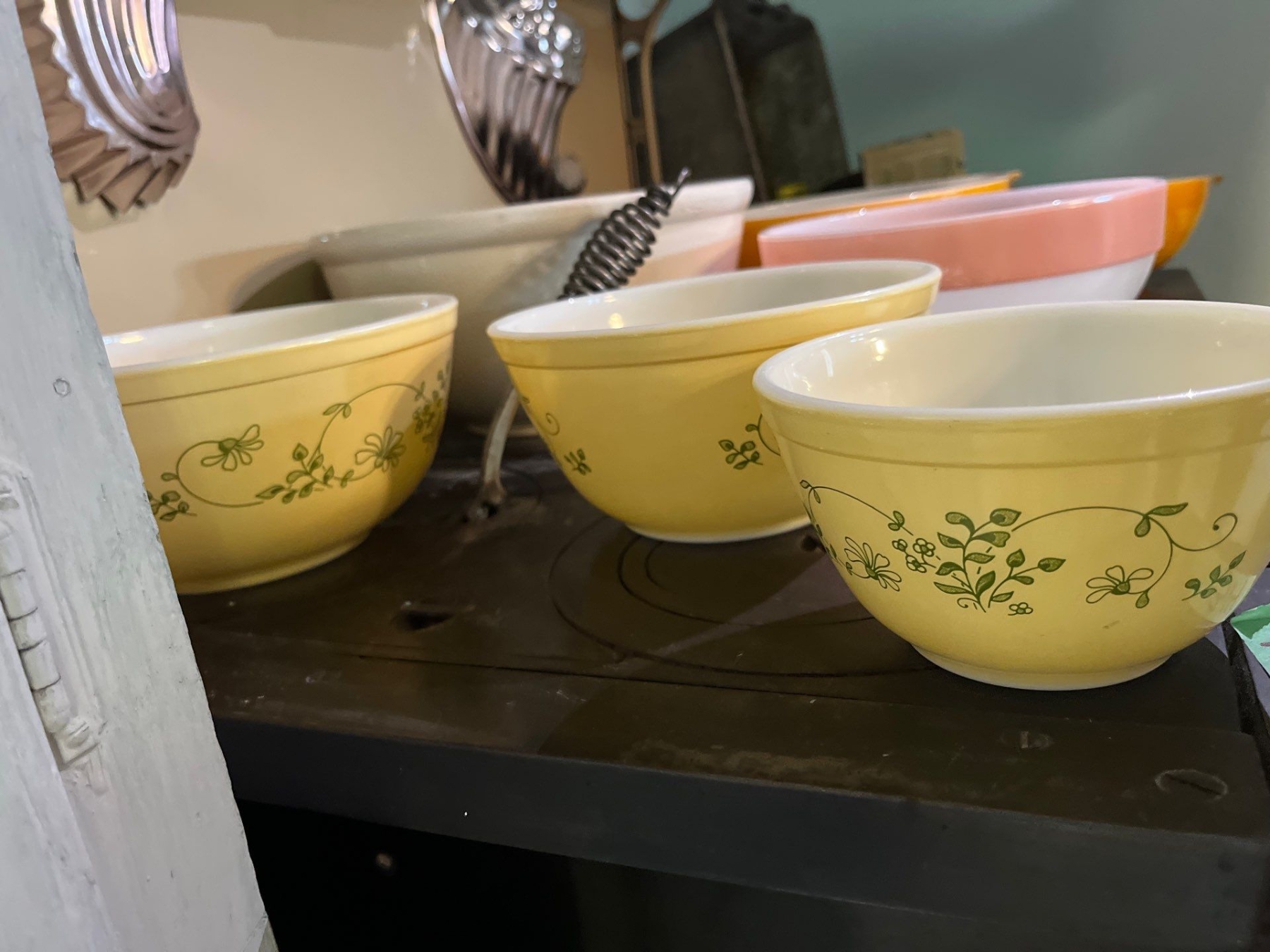 collection of 6 vintage Pyrex bowls, and one ceramic #10 whit bowl .