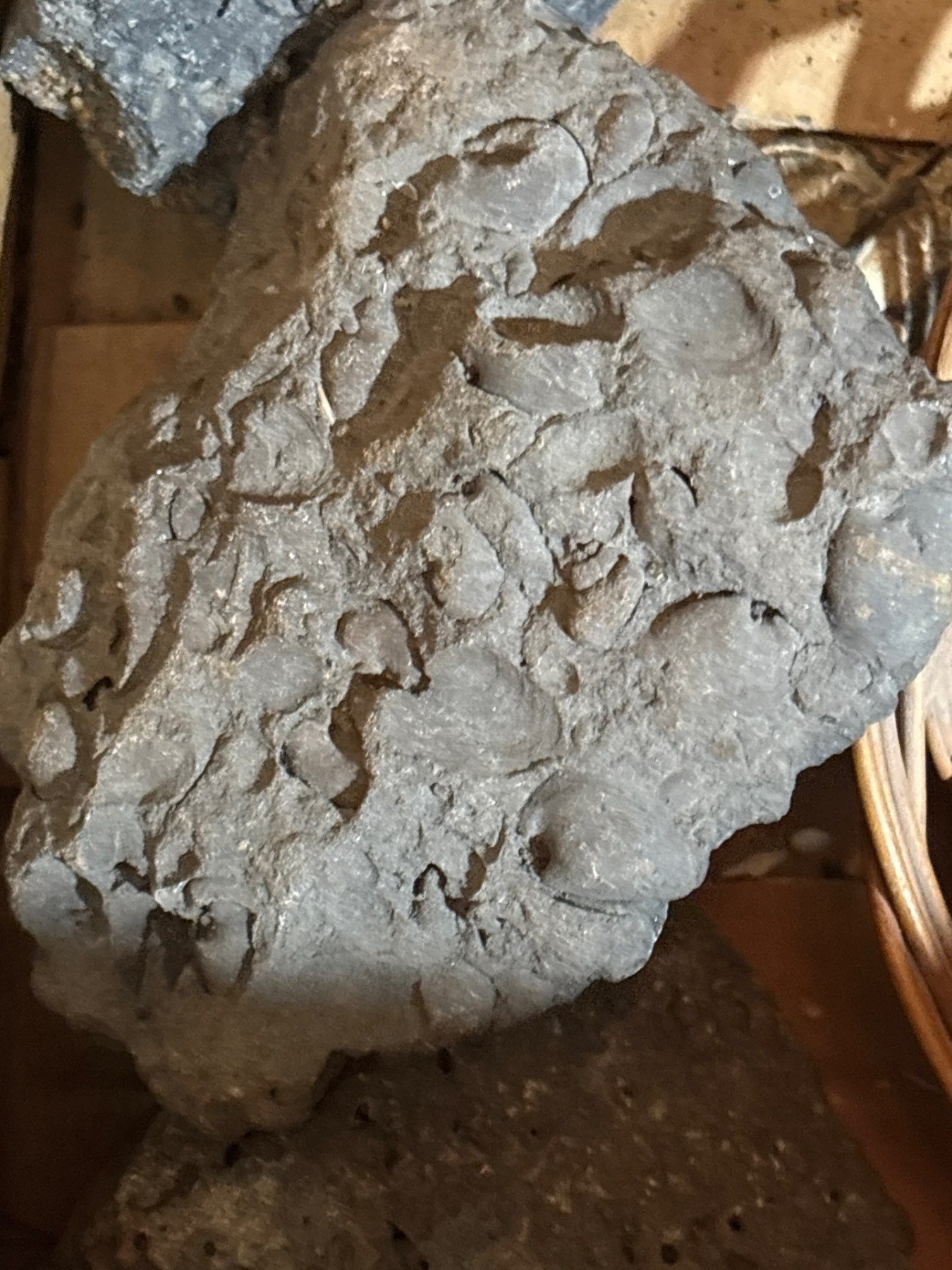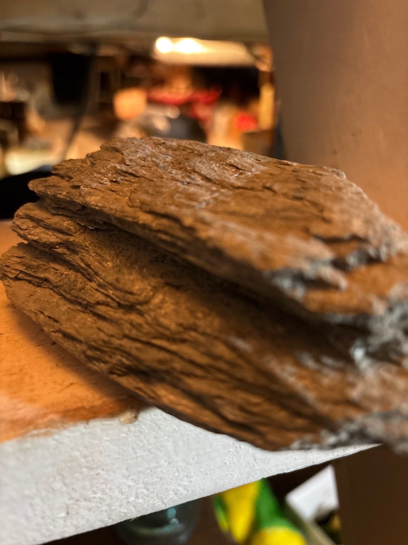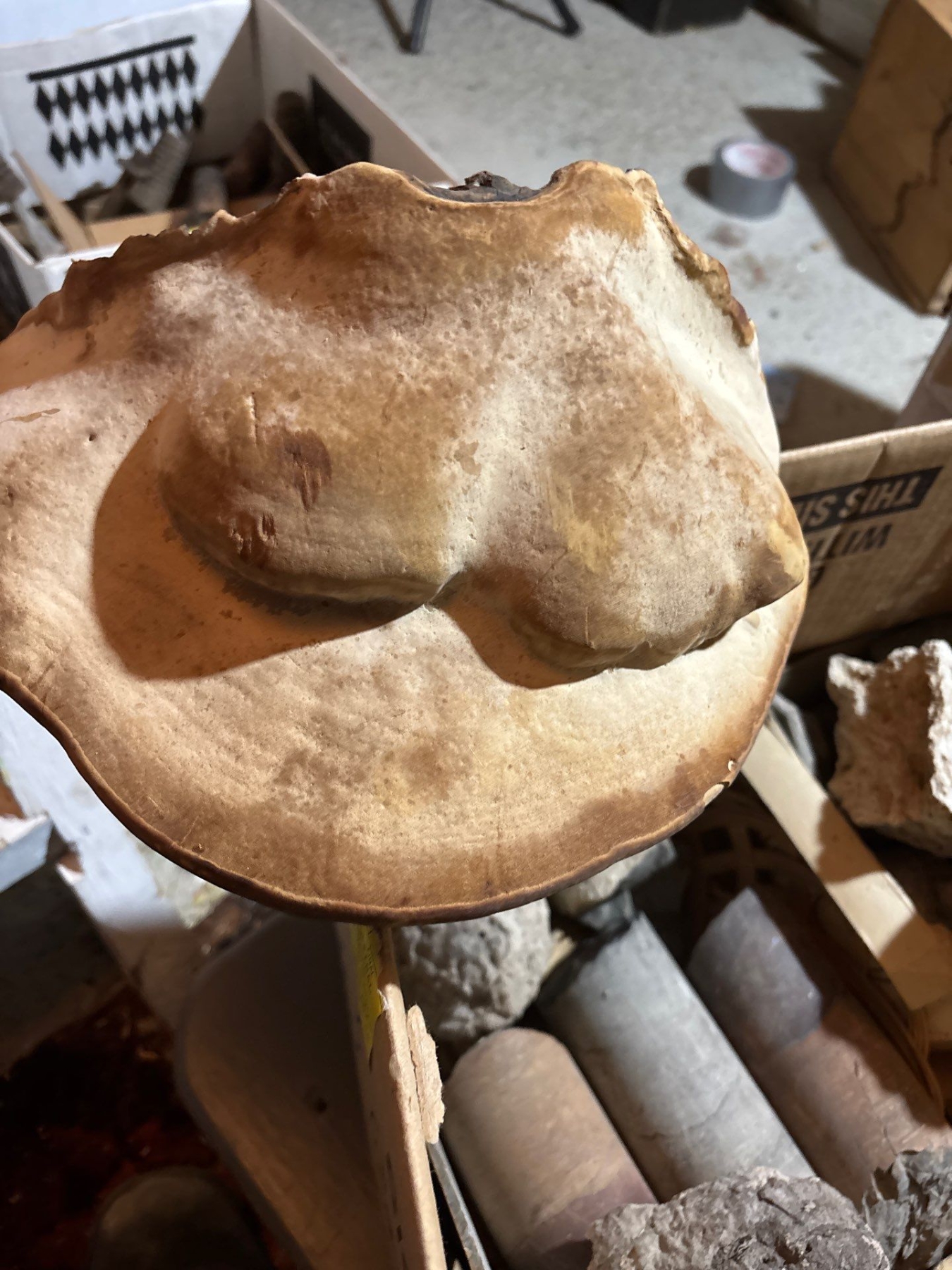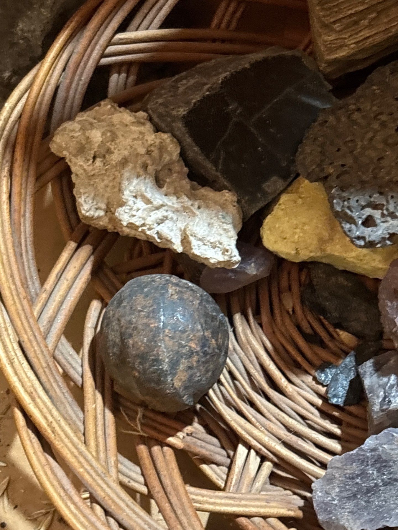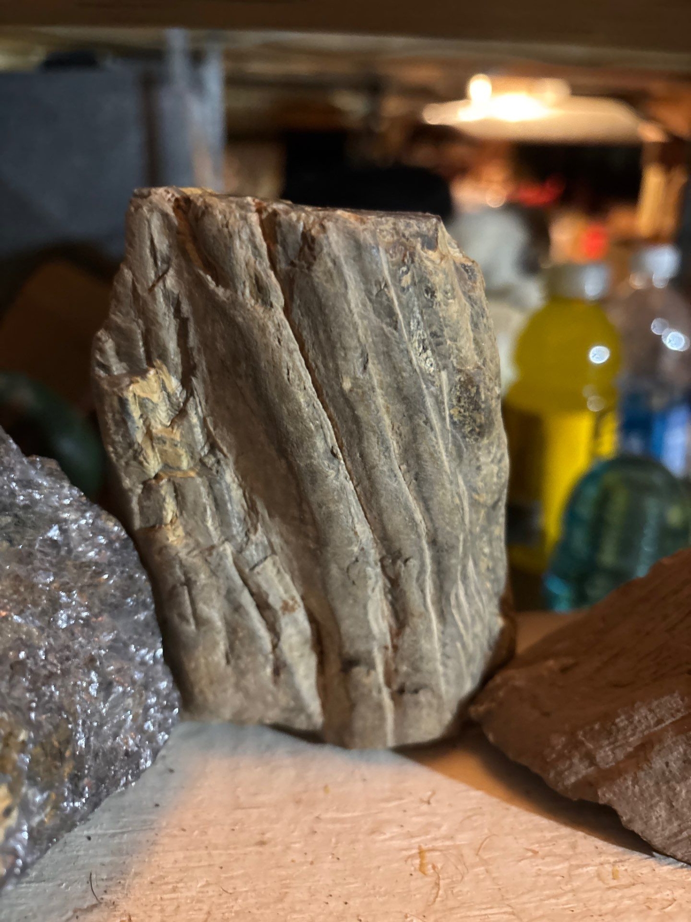 collection of miscellaneous rocks, core samples, and Red-belted conk (Fomitopsis pinicola), a common type of bracket fungus also known as the red-belted bracket.