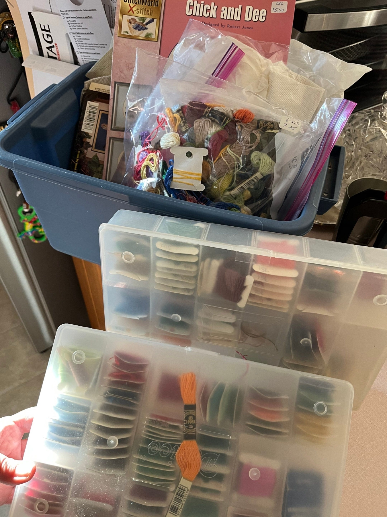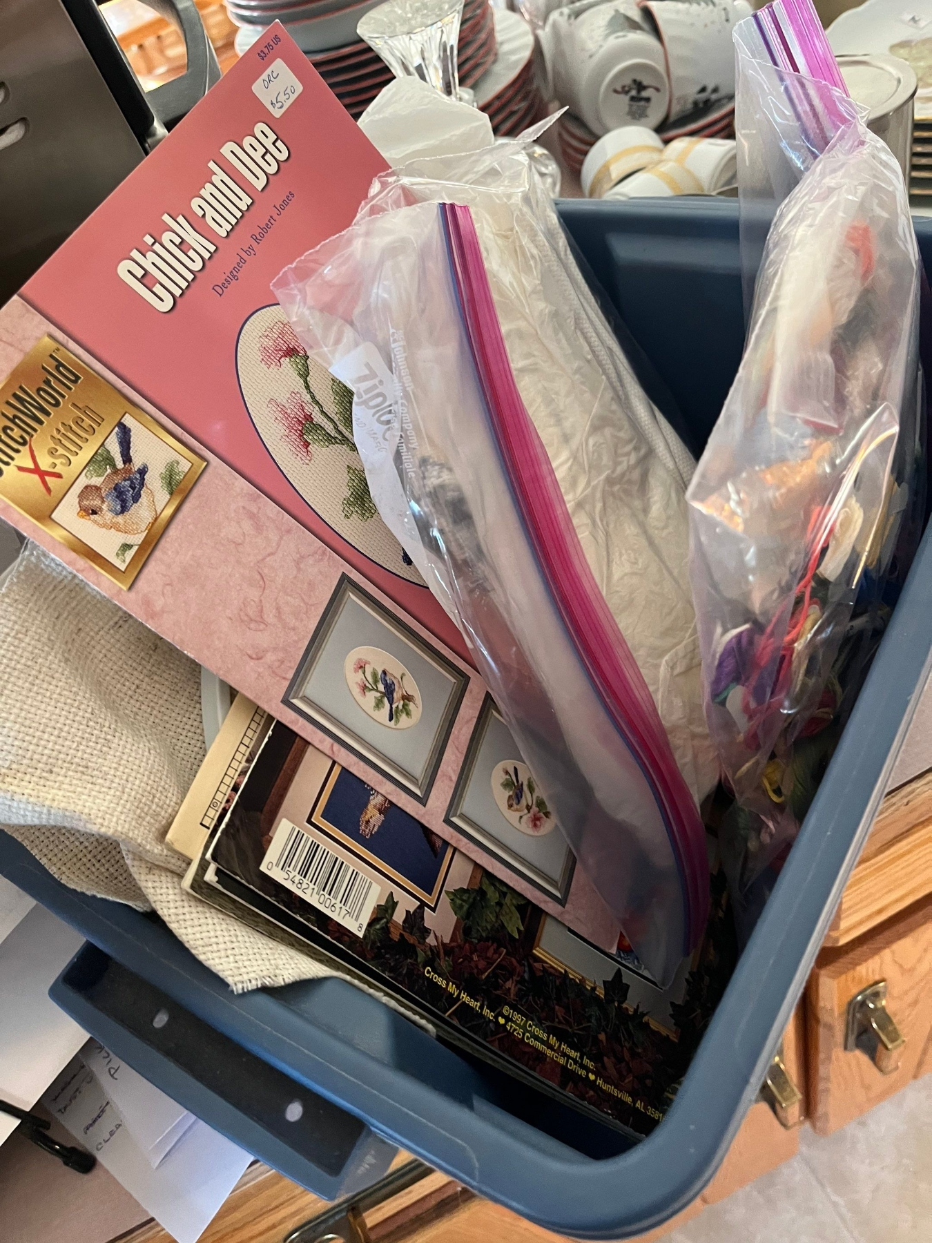 collection of patterns and needle work some of them are started and are waiting to be finished