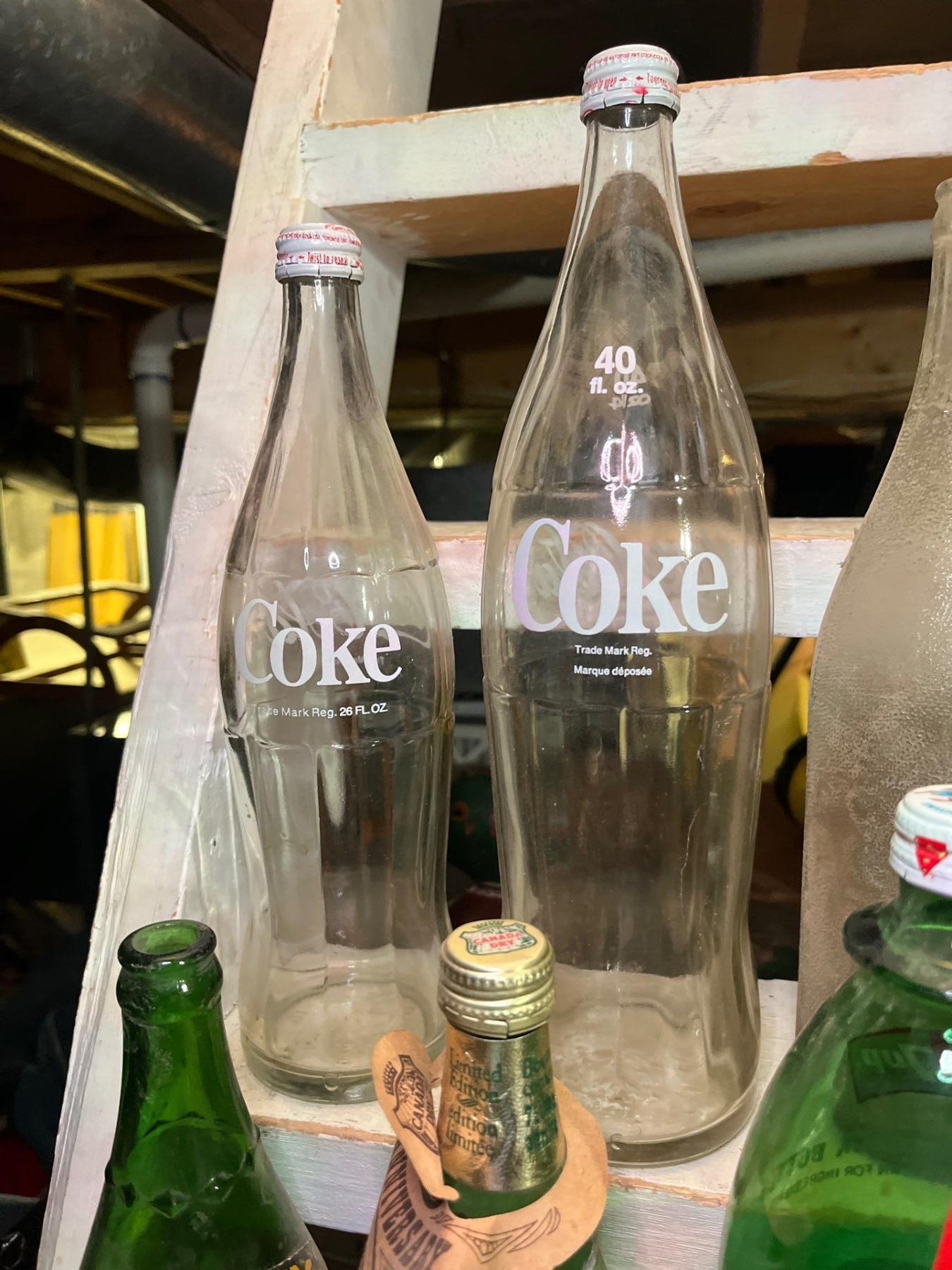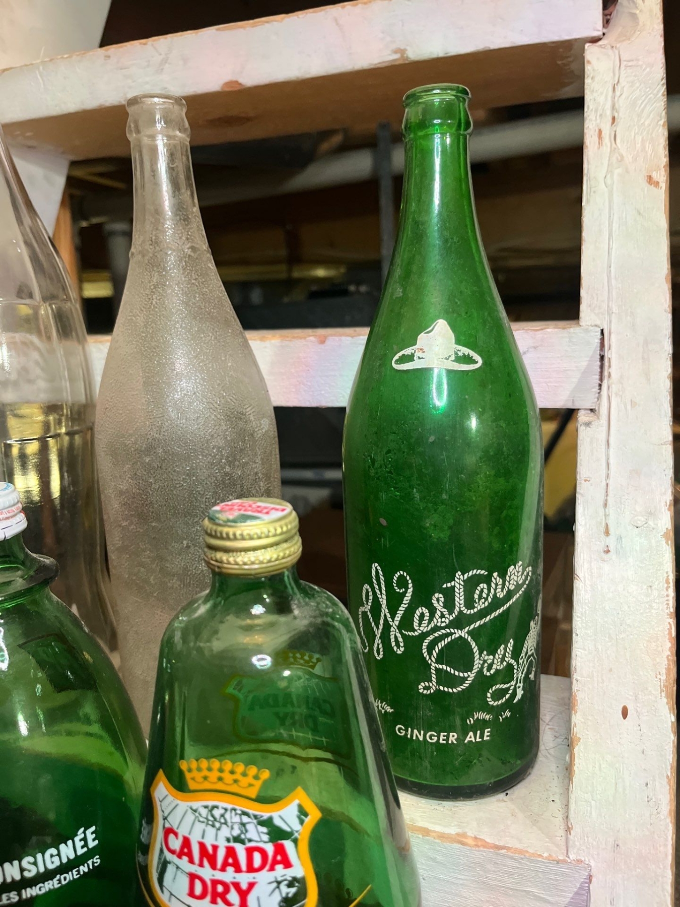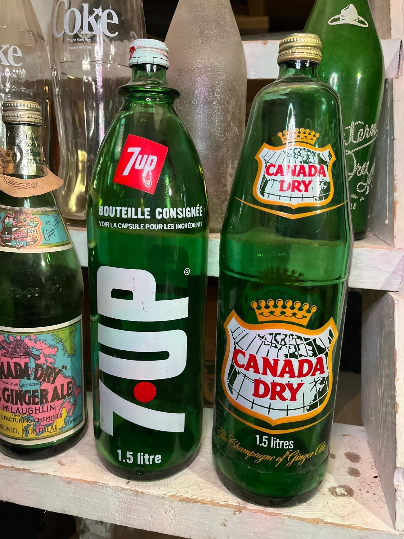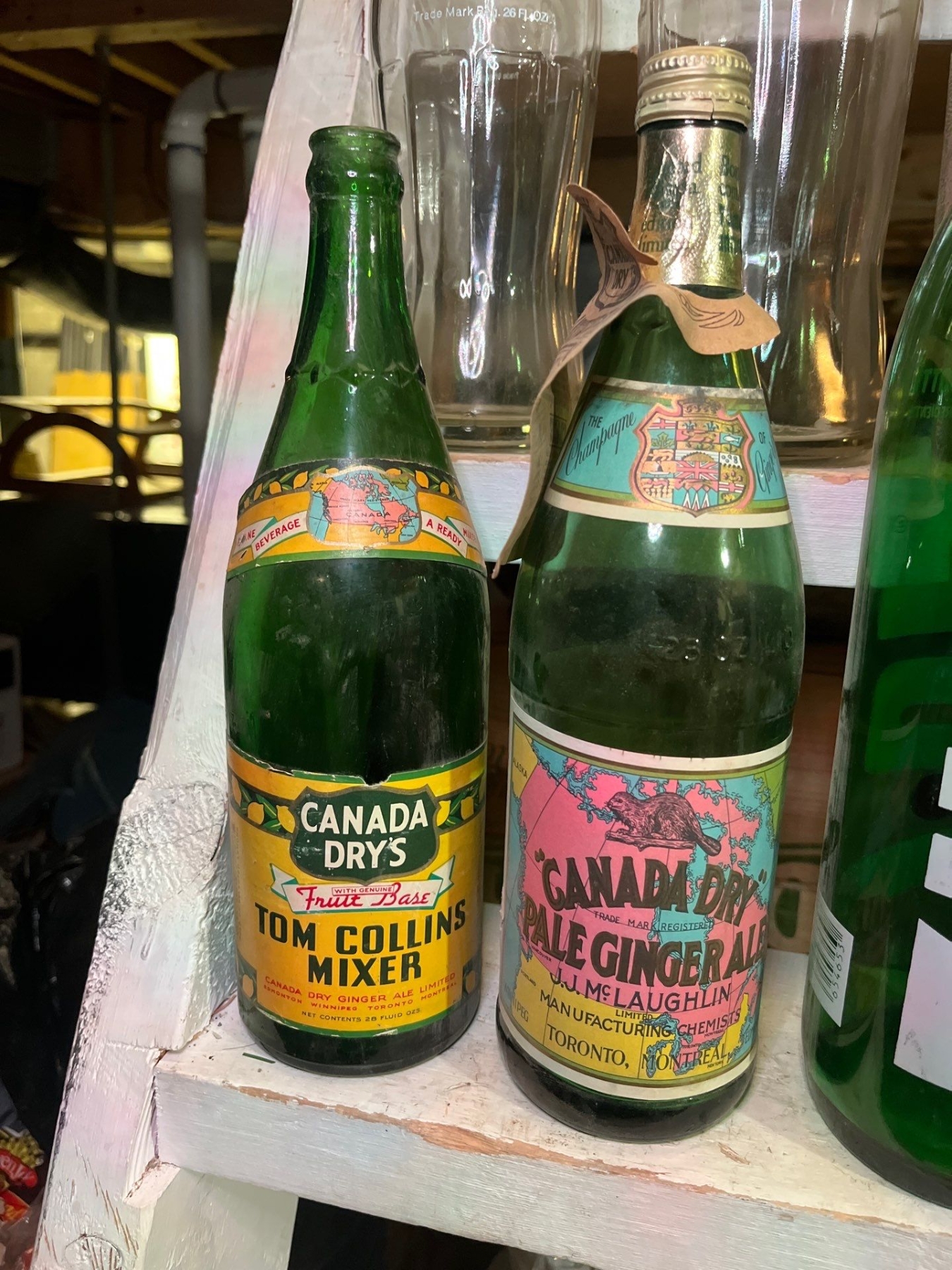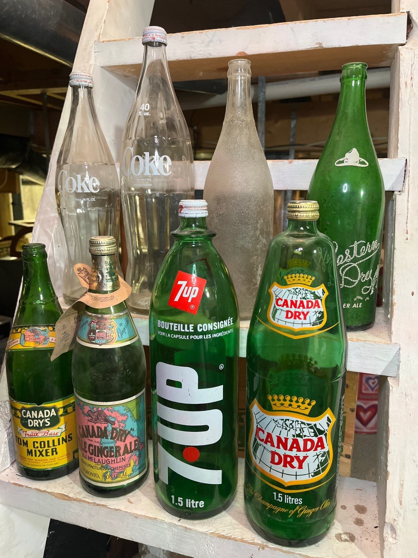 collection of unresearched bottles 1.5 L Canada Drive 1.5 L seven, Tom Holland mixer Canada dry Coke and a western Ginger ale.