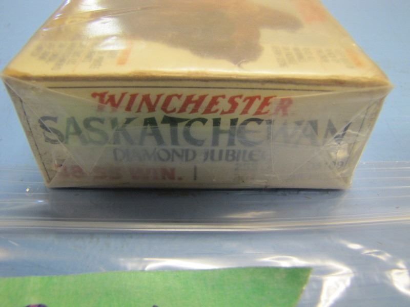 collector box Saskatchewan Diamond Jubilee commemorative ammunition 38 - 55 box has minor damage 20 rounds