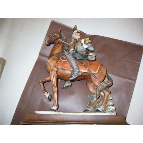 </font></strong>attractive sculpture of a man and a horse on wood base. the material is composite and in fair condition. the horse is missing one ear. the man is missing something in his hand. other than that is beautiful and has attractive colors. with two signature on the sides. Redaelli and 1982 Florence (copyright symbol). the sculpture is 16 inch Tall. base is 12 inch wide and 5 inch on the sides. with 1.25 depth for the base covered with felt. the colors are sage,off white and terra cotta. something to think about. </font>