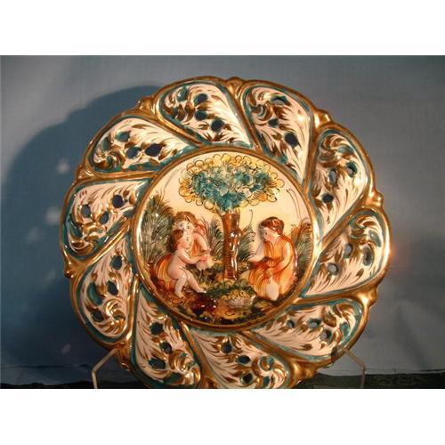 This is a beutiful example of early 1920's cpodimonte work,, it is in perfect condition and the colors are wonderful.. great price too. Purchased from a estate in Chocago Il.