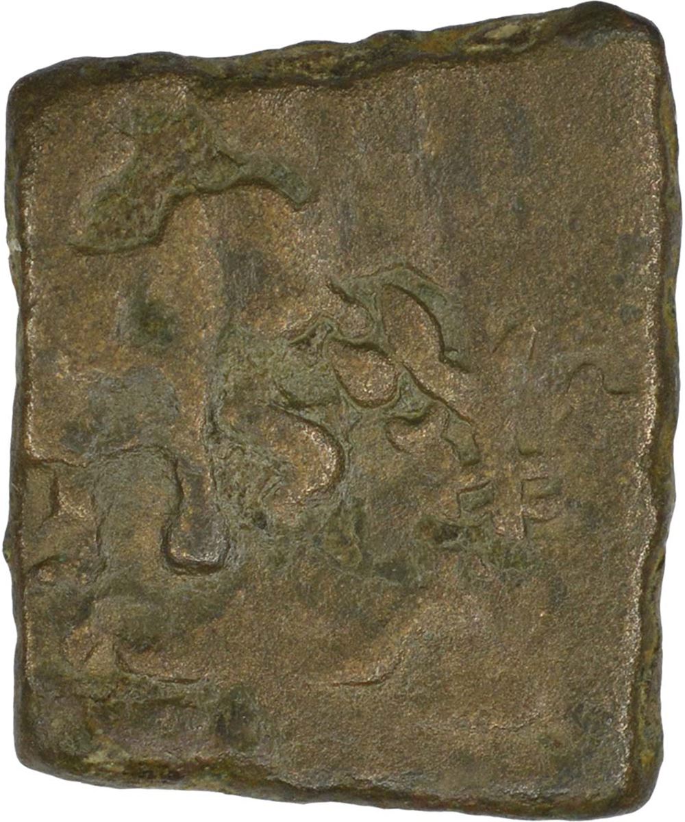 Region, Copper Unit, Double Struck Error, Obv: elephant facing to right, tree