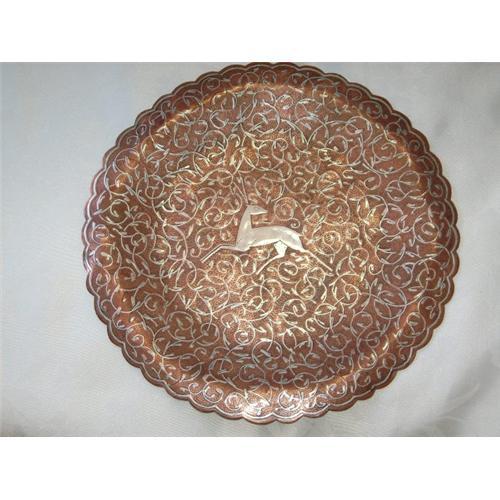 <tr><td>Title:copper work and silver inlaid plate with a</td></tr>