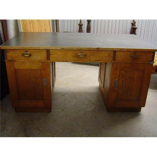 beautifull victorian desk , 3 draws and 3 others pullout draws in the doors . front and back can be shown . dark gren top .