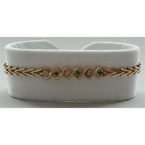 Very dainty 14K gold diamond and emerald bracelet, with .15 carat total weight of diamonds and .15 carat total weight of emeralds. It measures 7" in length and weighs 9.1 grams.