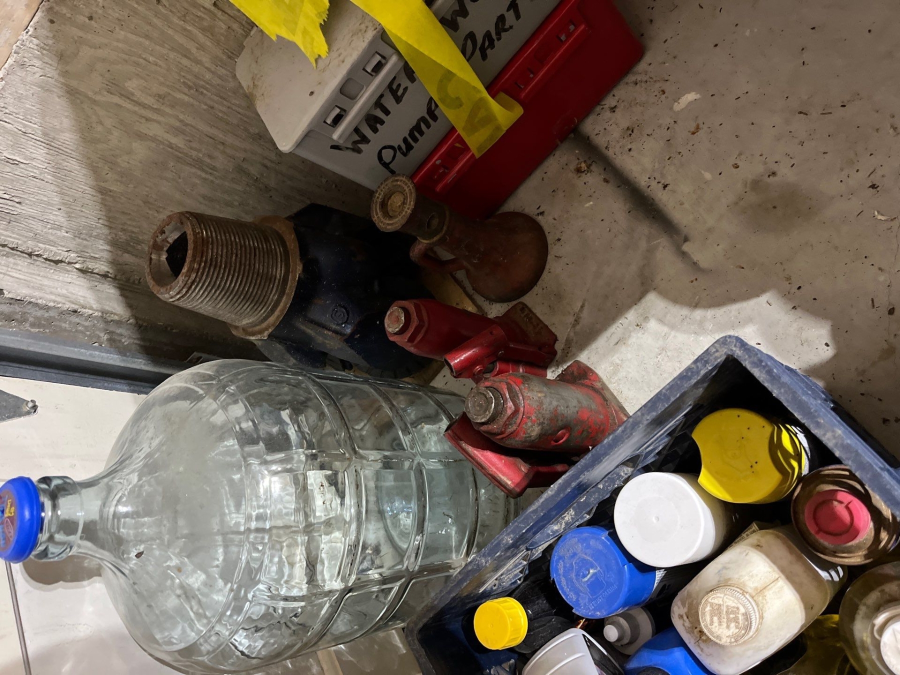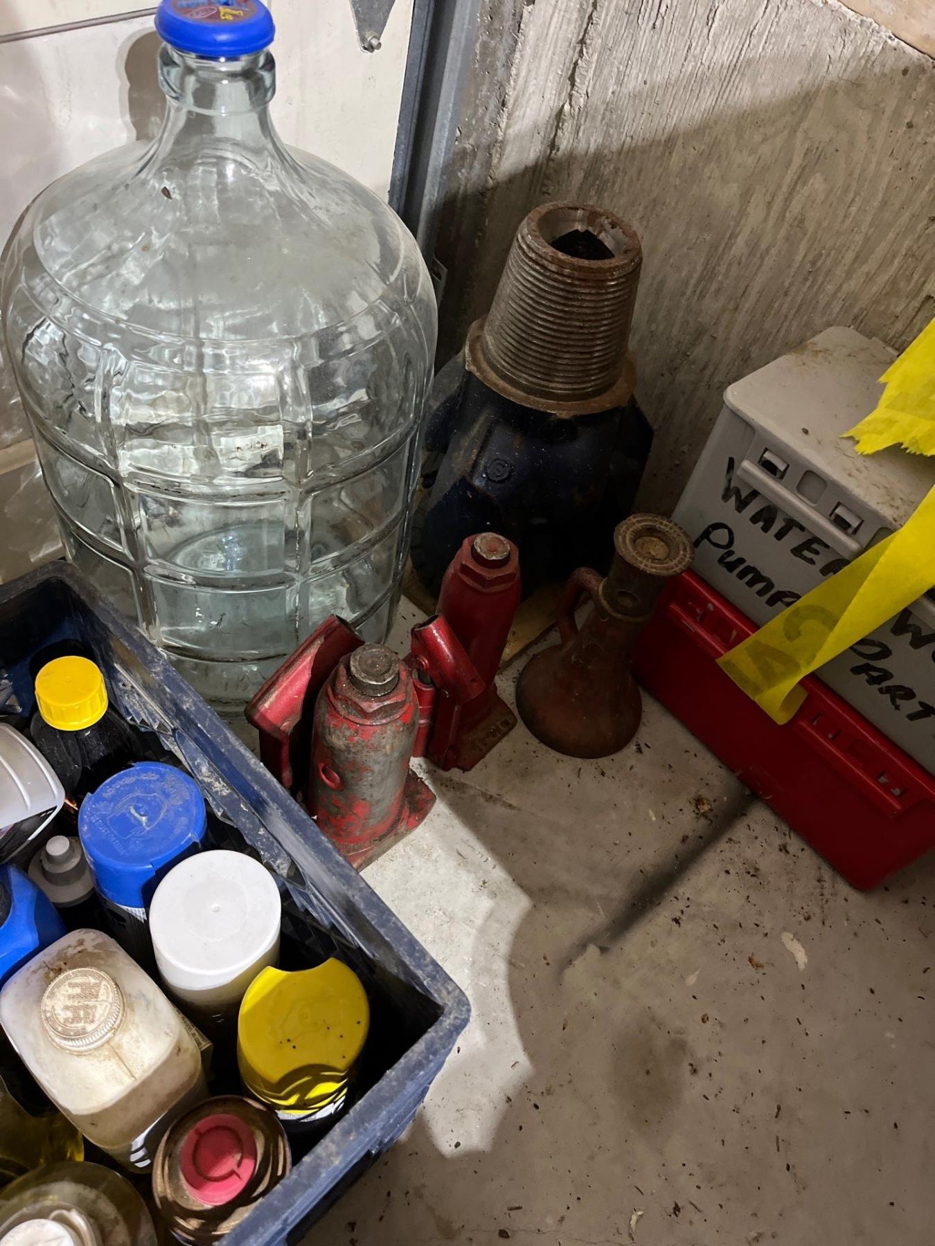 down hole drilling bit and two jacks and 1 antique Jack