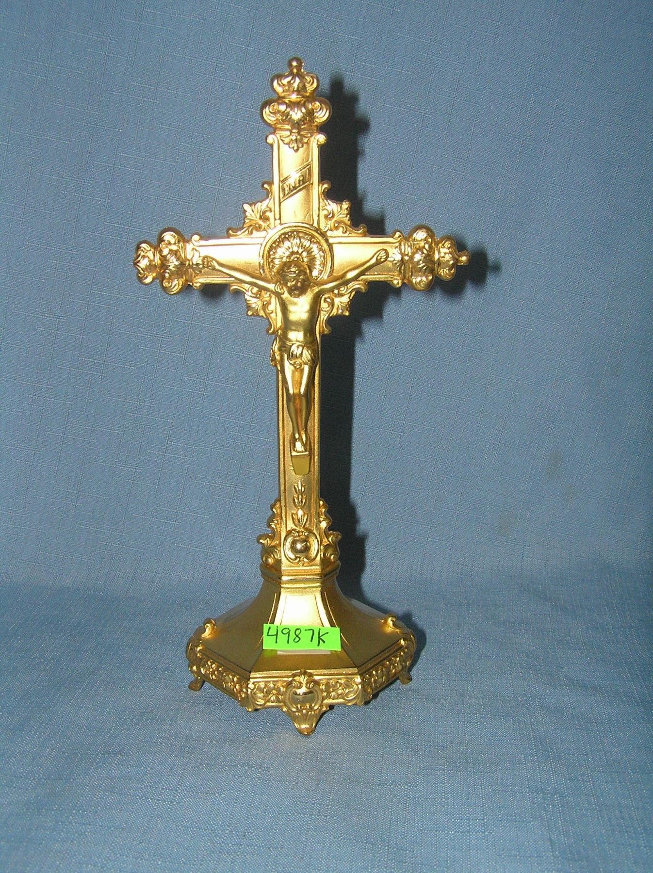 High quality gold tone cast metal Jesus on the cross circa 1940s st. value $450.00-$500.00