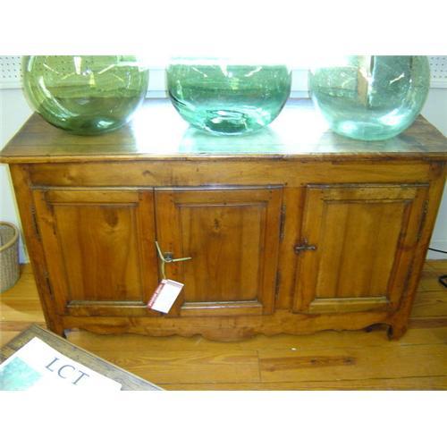 If you are hunting for a "Country French" server , here it is!! This very early, 1780, threee door enfilade is made of walnut. It has three panelled doors, a scalloped base and a cabriole style foot.The storage area is divided by a shelf. it has original hinges and hardware.
