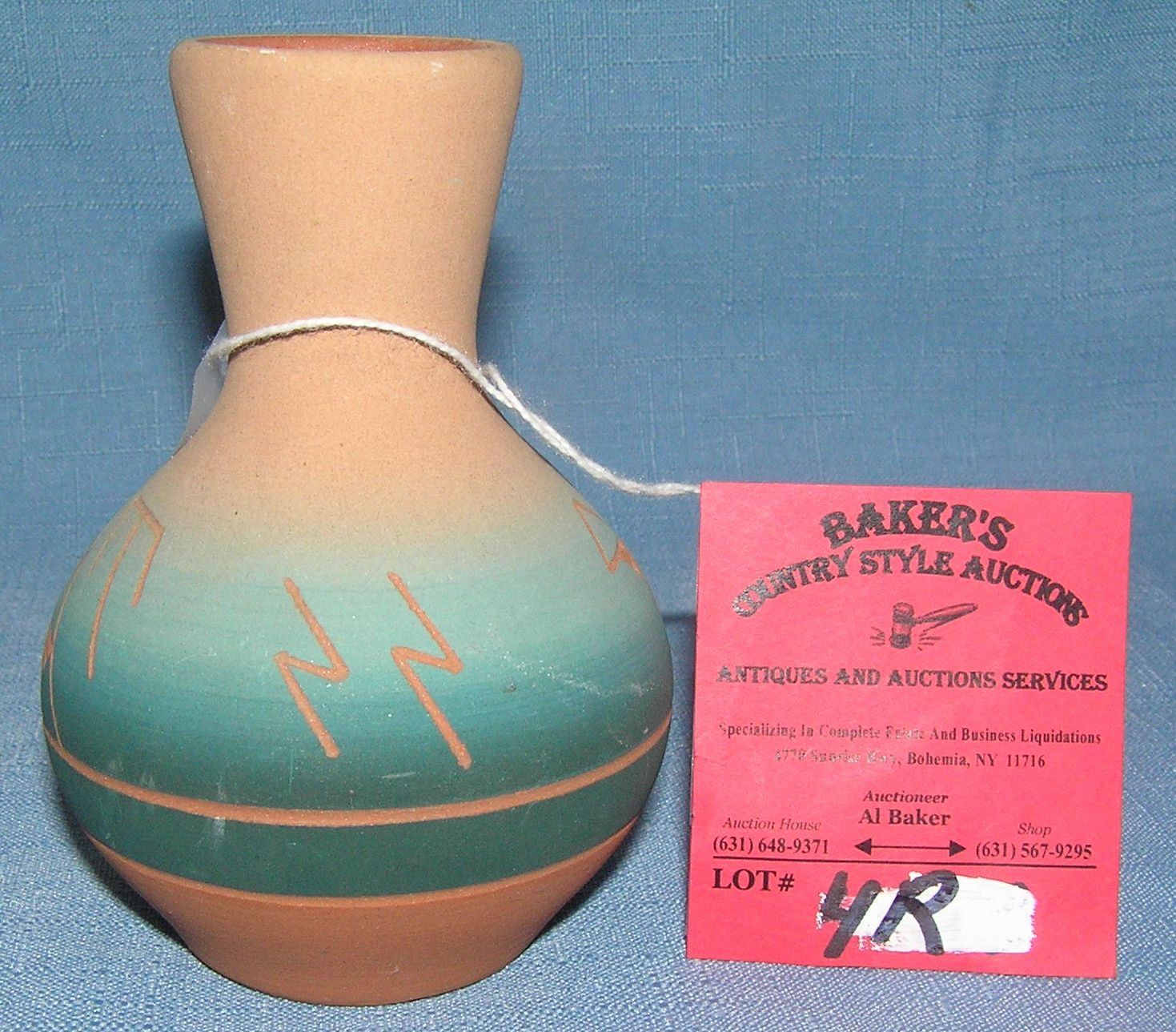 Artist signed hand painted earthenware southwest style vase est. value $30.00-$40.00