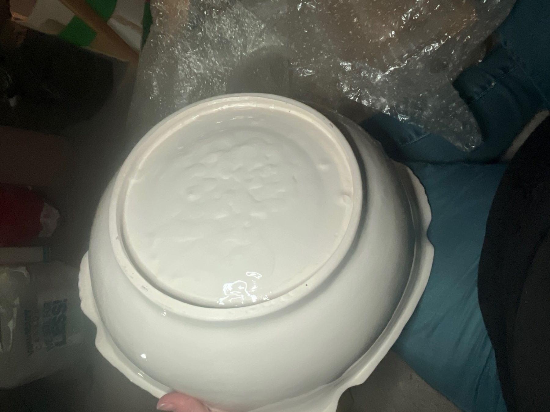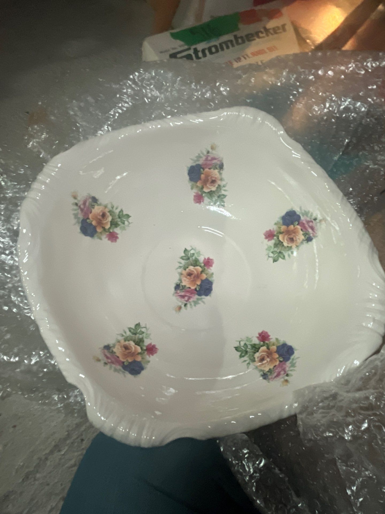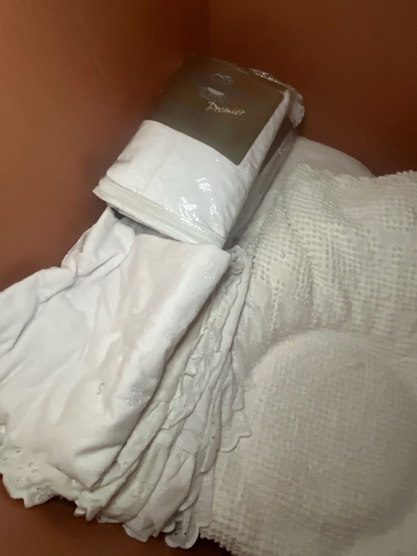 elegant water, basin and pitcher from MLS along with small pottery top with flowers and new white crisp never been used tablecloth.