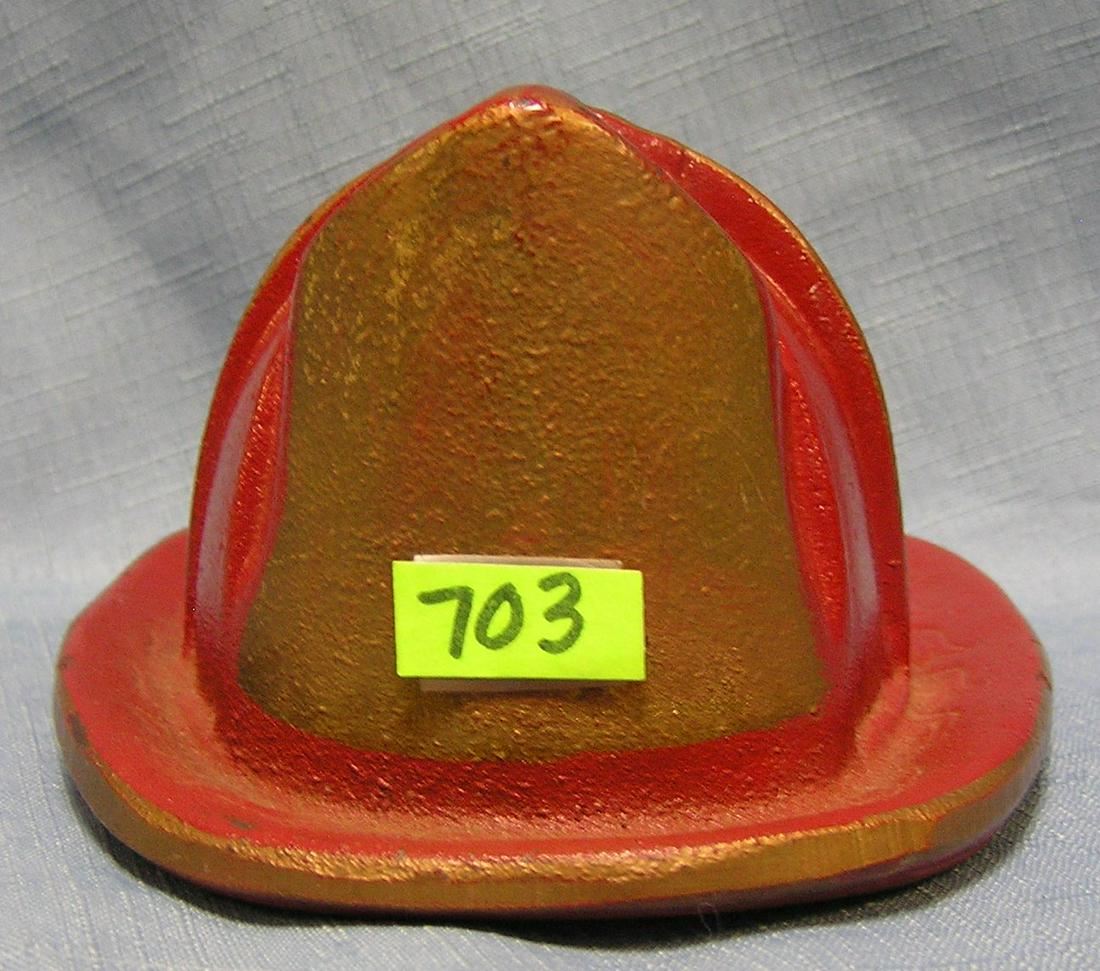 Early heavy cast iron fire dept helmet shaped desk top display/paperweight circa 1950?s est. value $100.00-$125.00