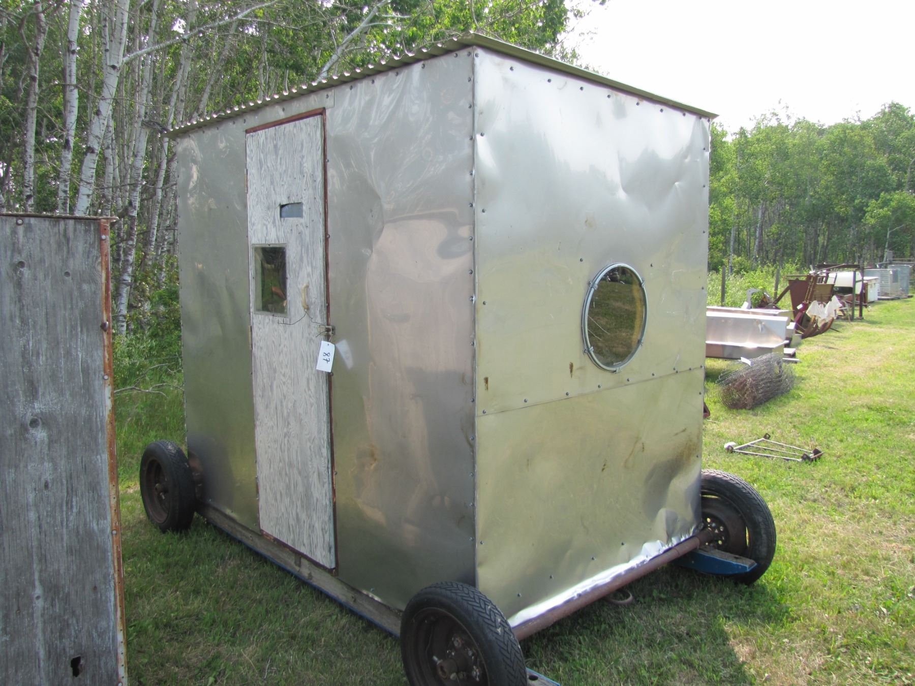 fishing shack on wheels, easily converted to skids by removing wheels, 1-7/8" hitch