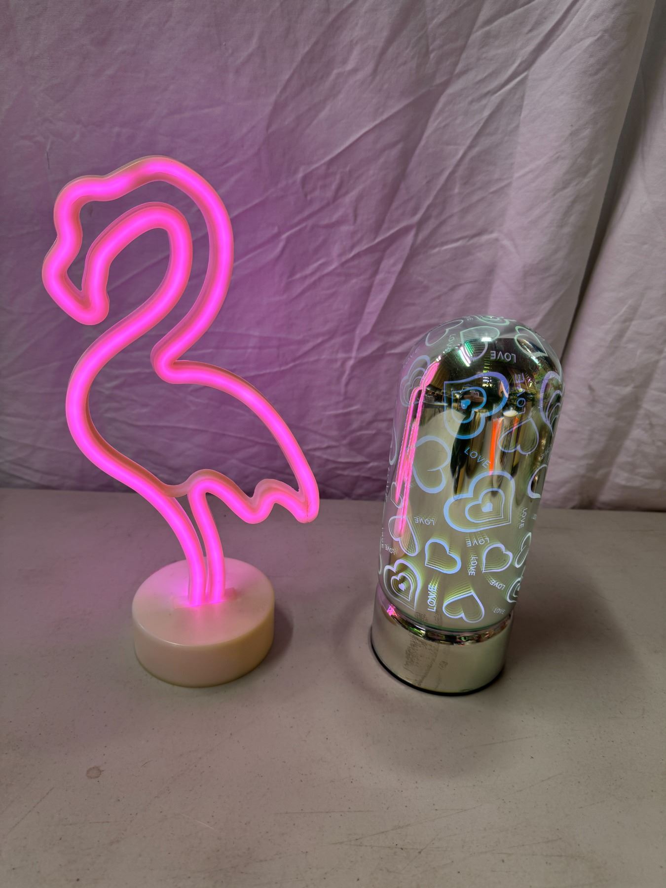 flamingo, and love lights both working