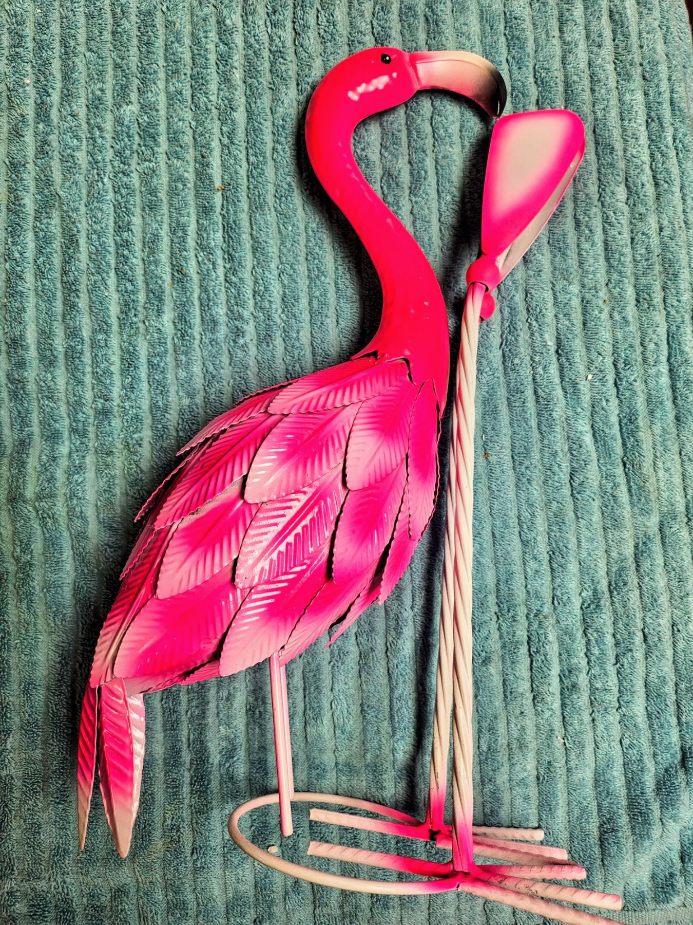 metal standing flamingo