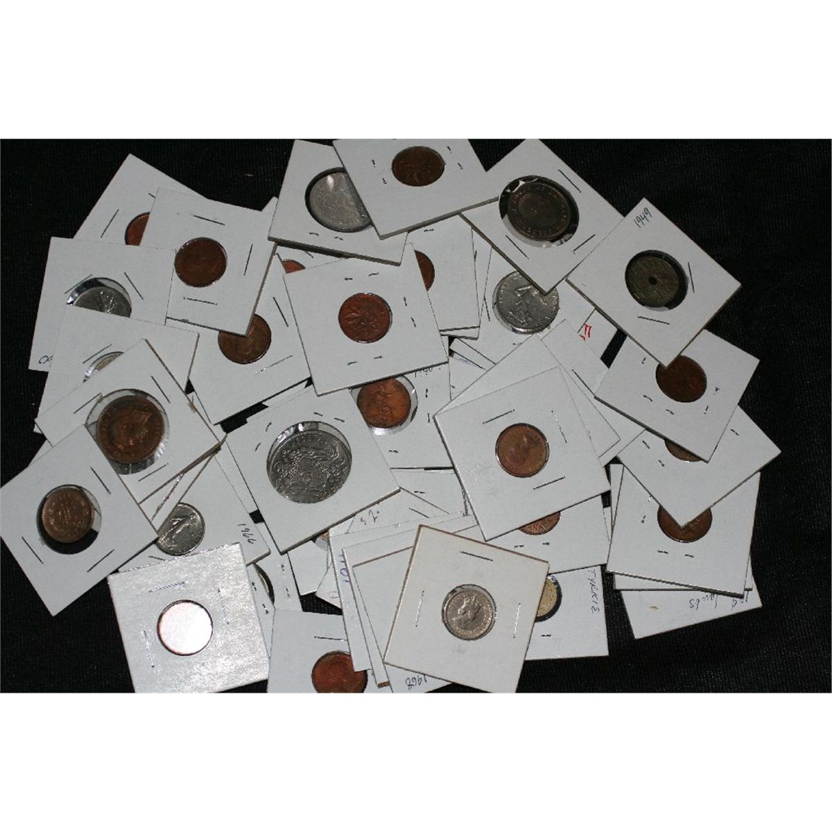 foreign coins and Tokens various dates & conditions, lot of 50 in flats