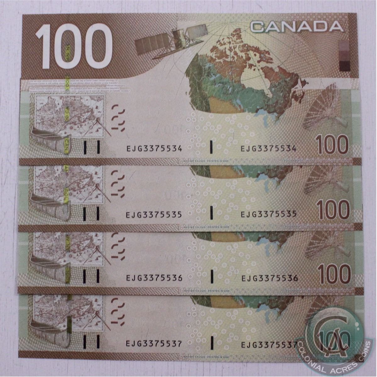 four 2004 $100.00 notes with consecutive serial numbers in UNC Condition.