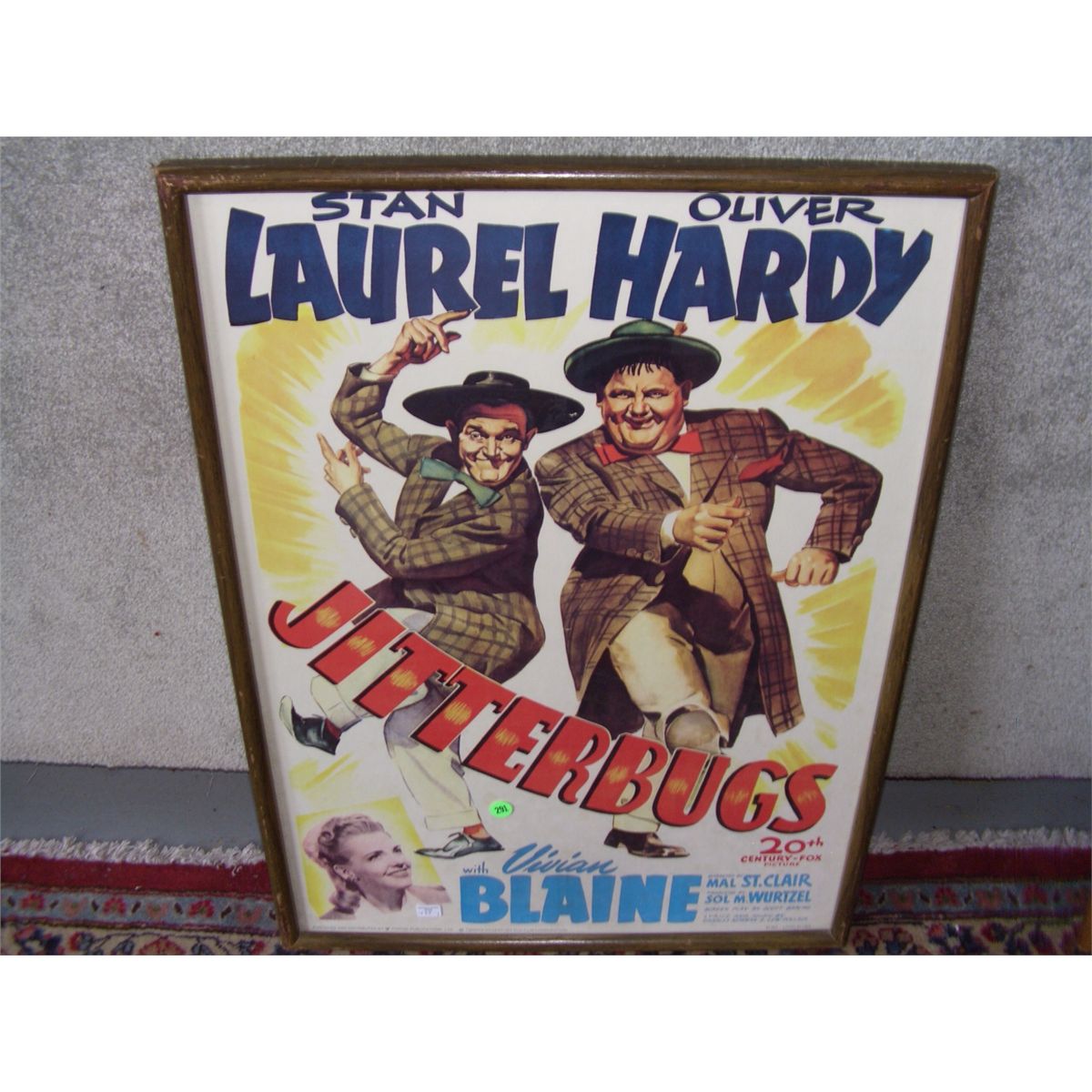 framed movie poster of Laurel and Hardy titled "Jitterbugs" MO64 (1964?) 28 3/4 x 21 art 27 3/4 x 19