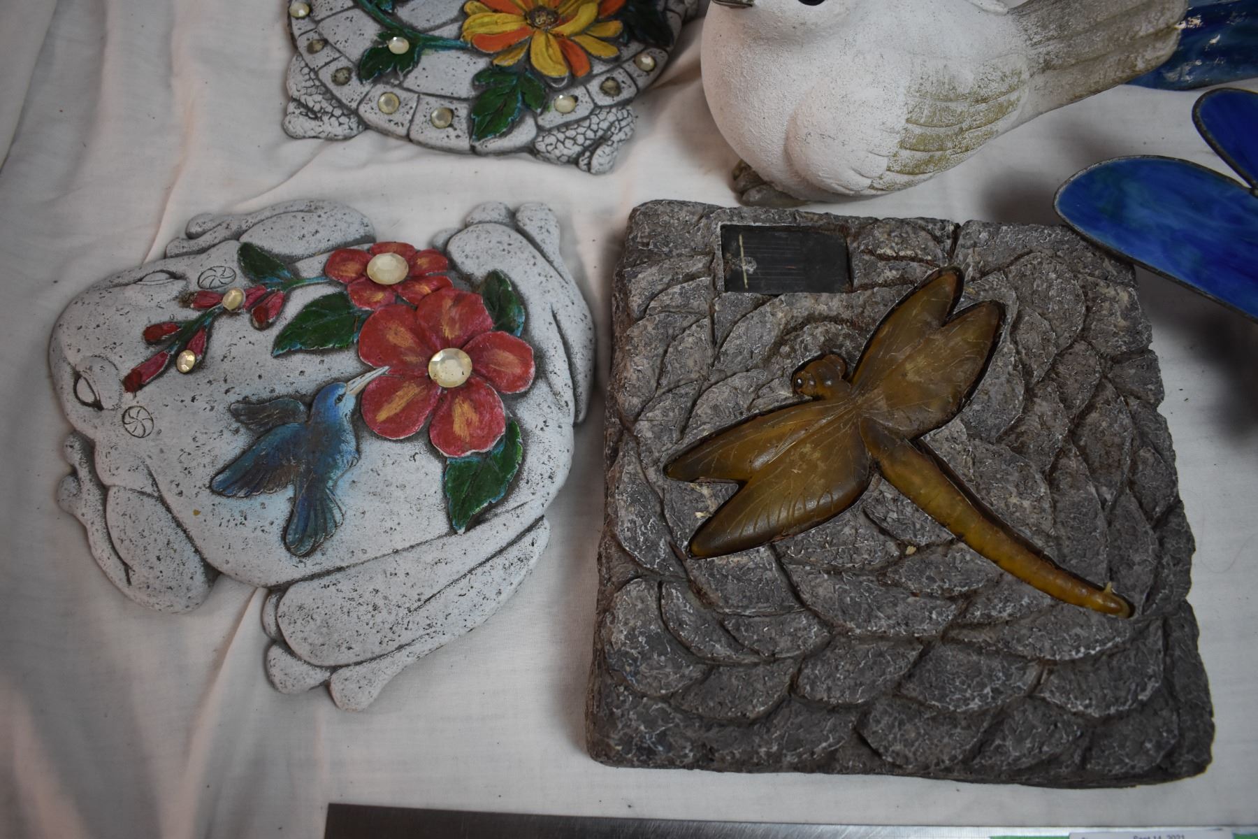 garden ornaments – stone pads (dragonfly ornaments glued otgether)