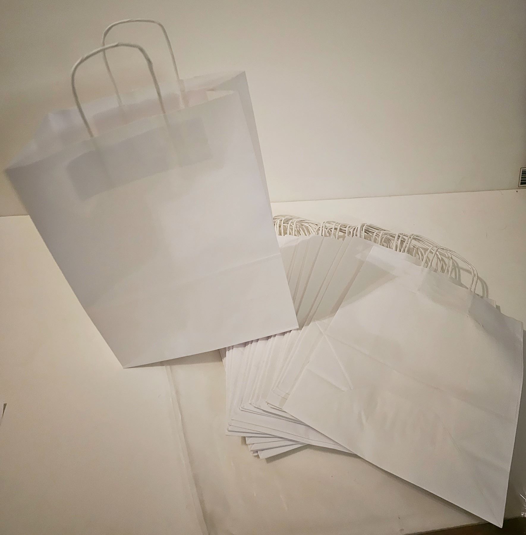 This is a set of 25 white gift bags, Great for upcoming Christmas partys, New