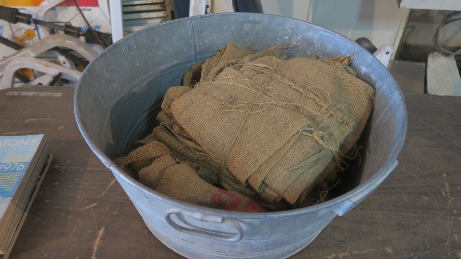 glavanized tub with assorted burlap sacks