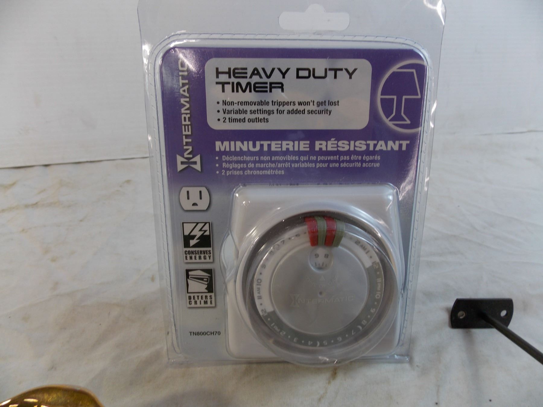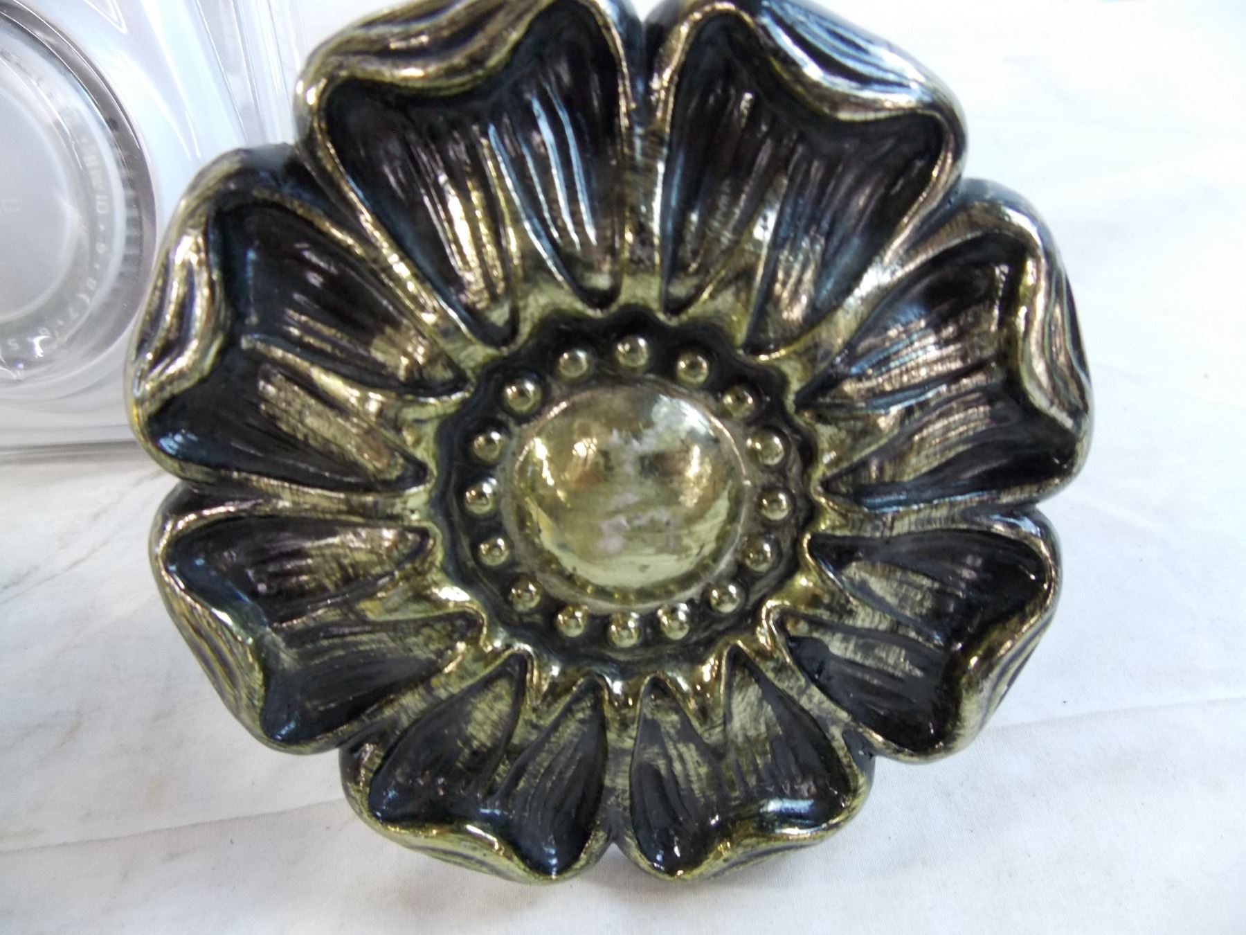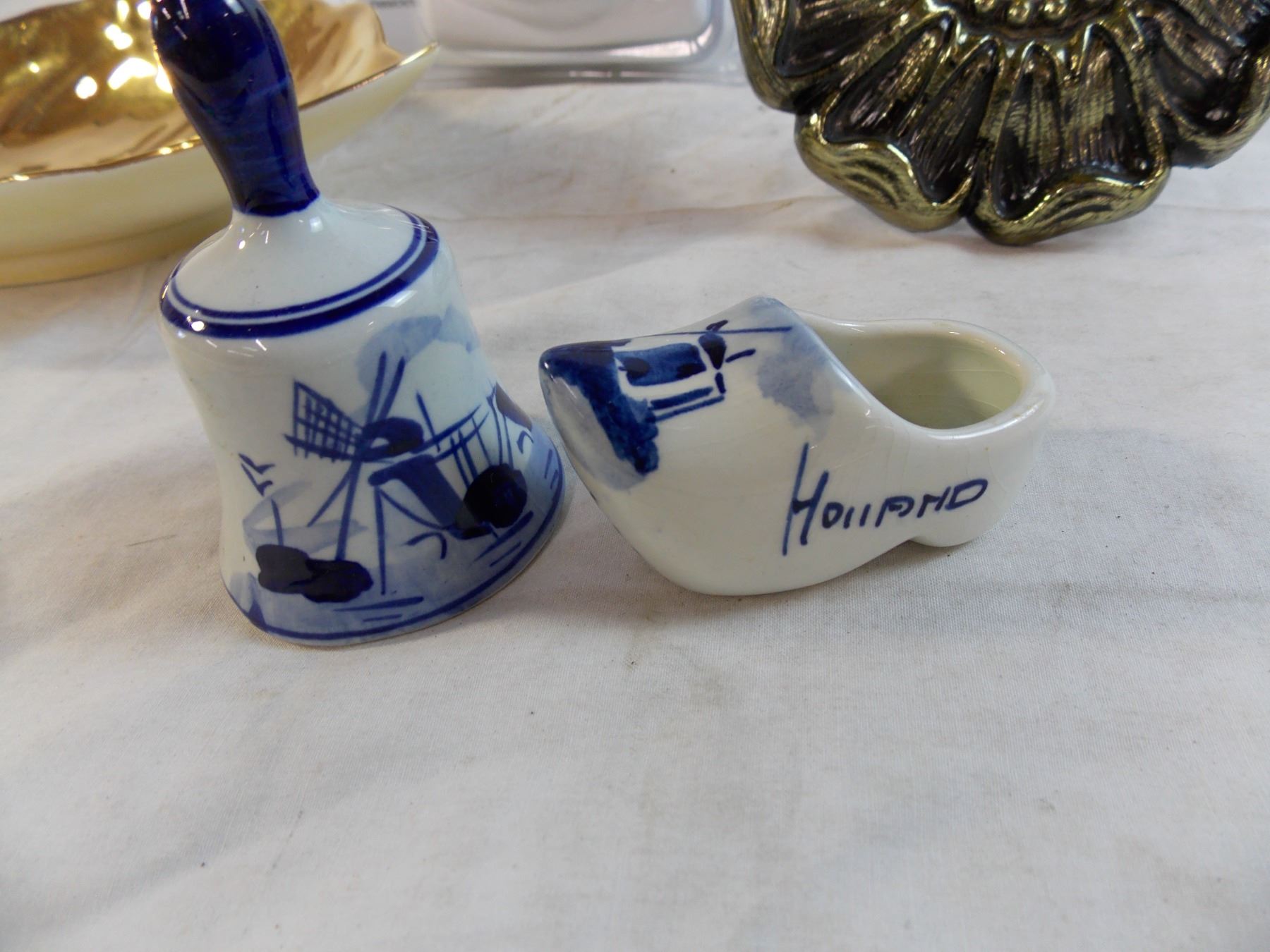 gold leaf dish, misc items, heavy duty timer